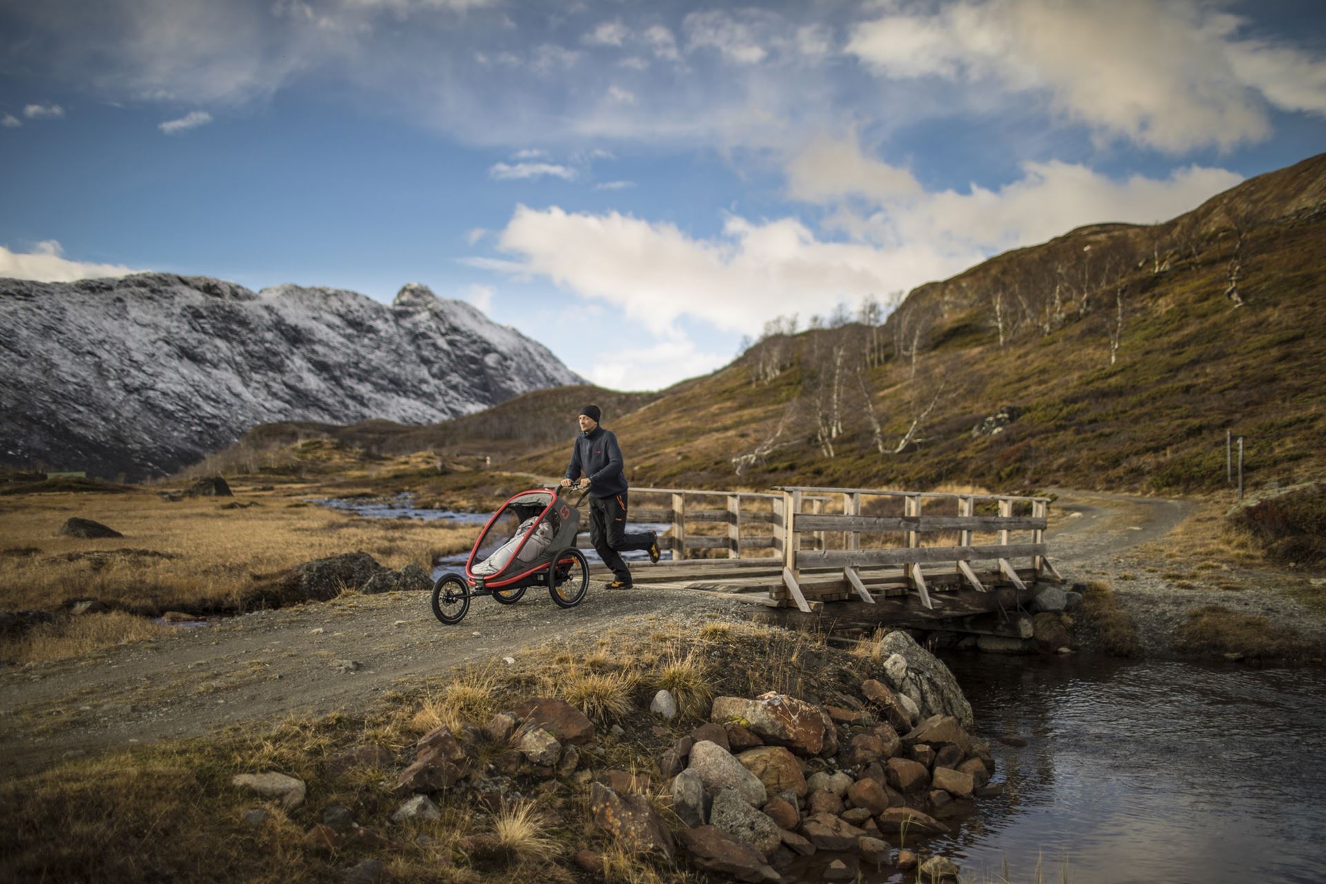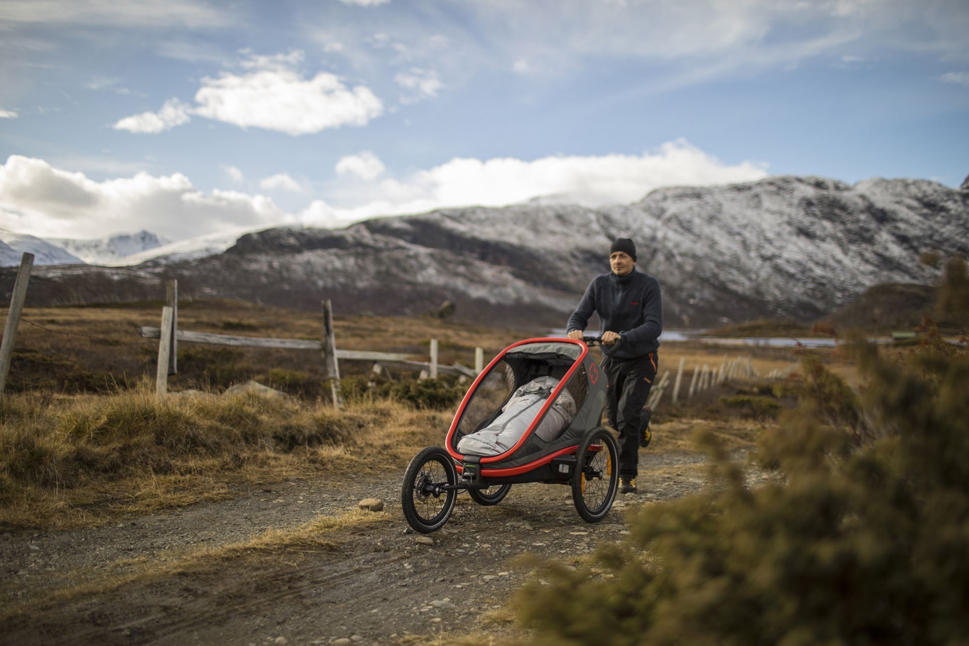 - Multifunksjonsvogn: sykkelvogn, barnevogn, skisett/pulk, joggevogn (kjøpes utenom)
