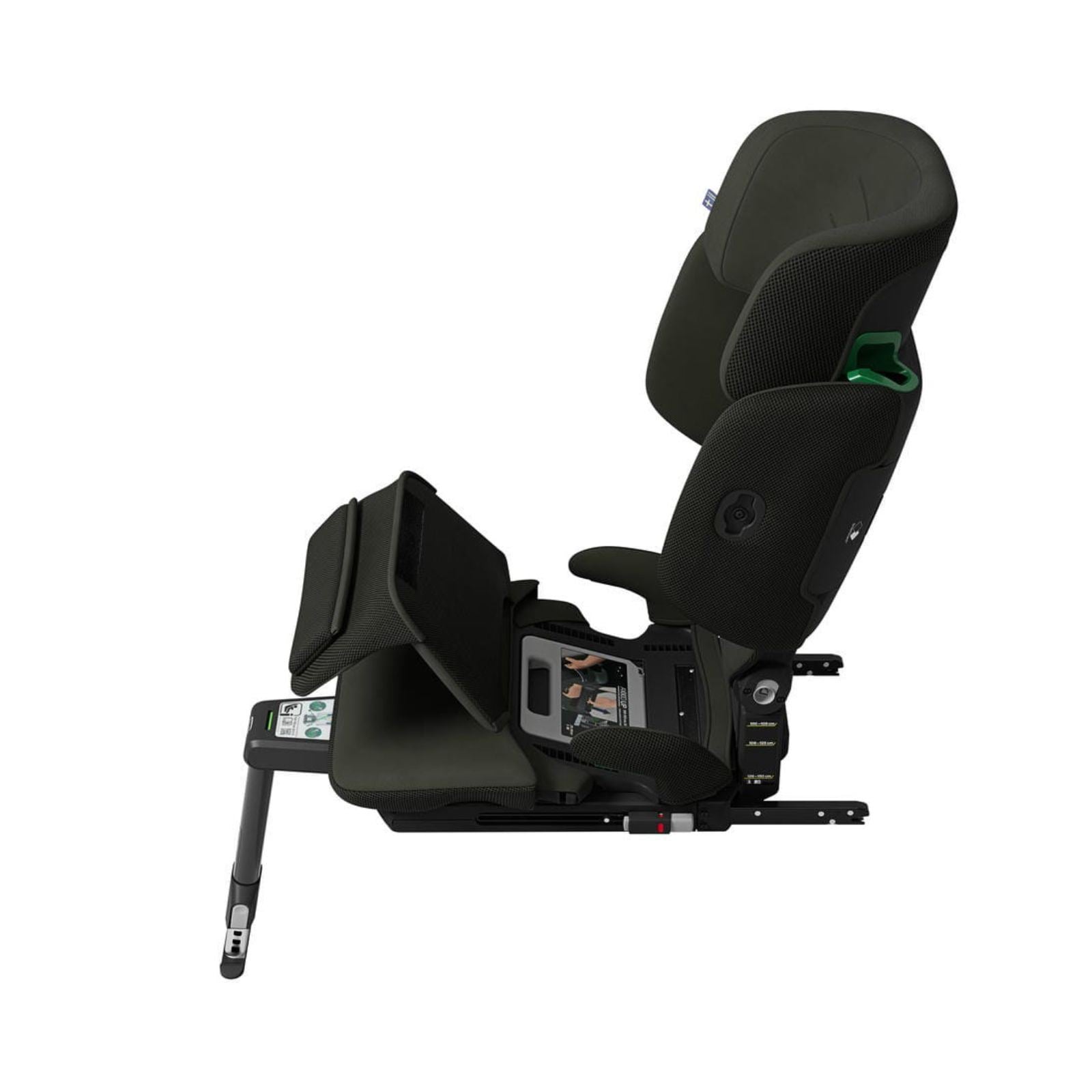 - Kan monteres med ISOFIX og støtteben, eller bilens trepunktsbelte