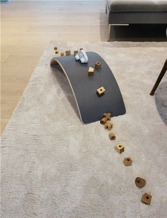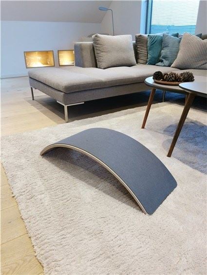 Et morsomt og stilrent balansebrett som kan brukes til å leke på, balansere på, som en krakk, eller som en bilbro. Balansebrettet tåler opp til 100 kg, og er godkjent etter europeiske standarder. Produsert i bøketre med vannbasert maling. Den ene siden er trekt med grå filt som gir mindre slitasje og lyd.