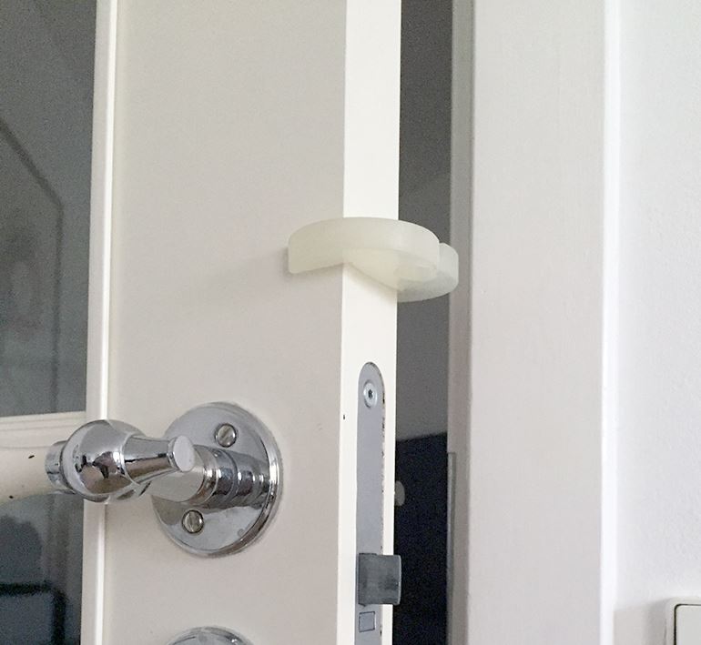 Fingerbeskytter fra Babydan forhindrer barnet i å få fingrene i klem i døren. Den er enkel i bruk, og når du ikke har bruk for den kan du bare sette den på dørhåndtaket. Enkel barnesikring av dørene