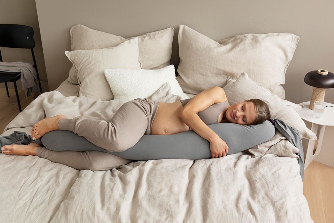 bbhugme graviditetspute og ammepute gir deg 5-punkts kroppsstøtte og justerbar fasthet. Utviklet av helsepersonell, laget med antibakterielle mikroperler og OEKO-TEX-sertifisert trekk. Perfekt for søvn og avlastning gjennom hele svangerskapet, fra første trimester til du er ferdig med amming!