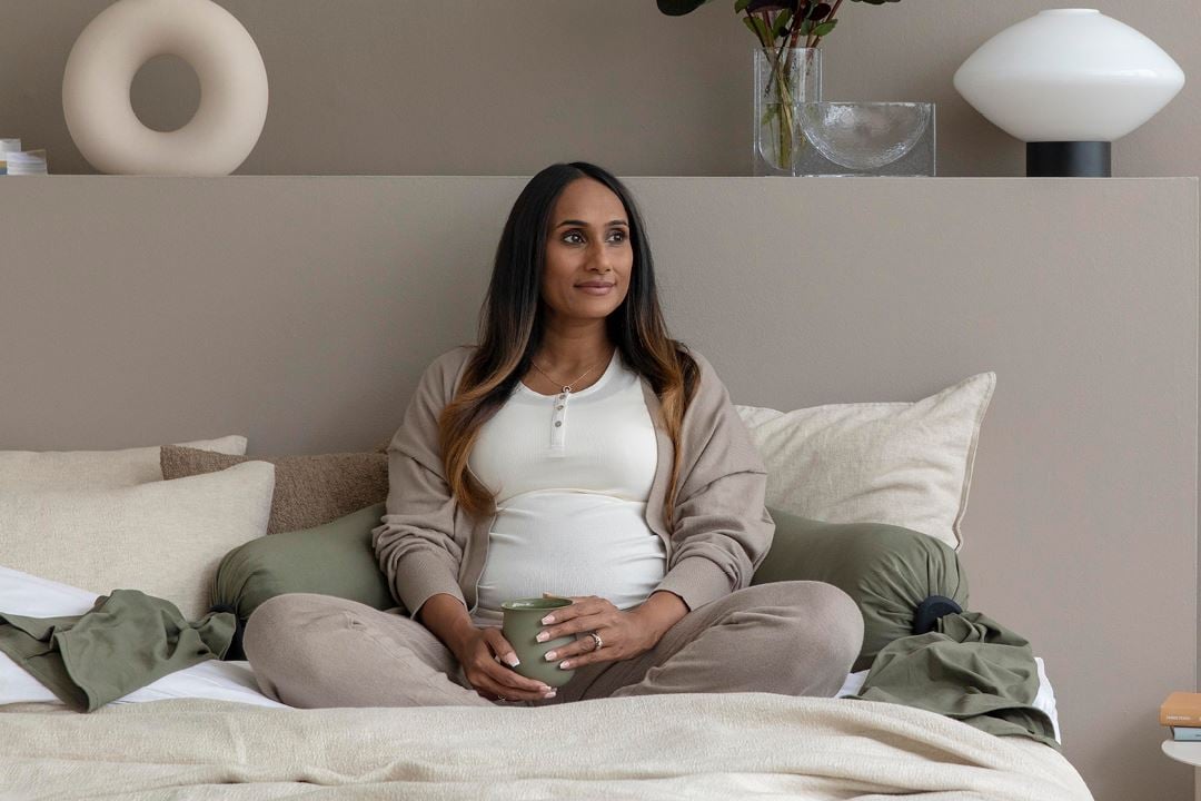 bbhugme graviditetspute og ammepute gir deg 5-punkts kroppsstøtte og justerbar fasthet. Utviklet av helsepersonell, laget med antibakterielle mikroperler og OEKO-TEX-sertifisert trekk. Perfekt for søvn og avlastning gjennom hele svangerskapet, fra første trimester til du er ferdig med amming!