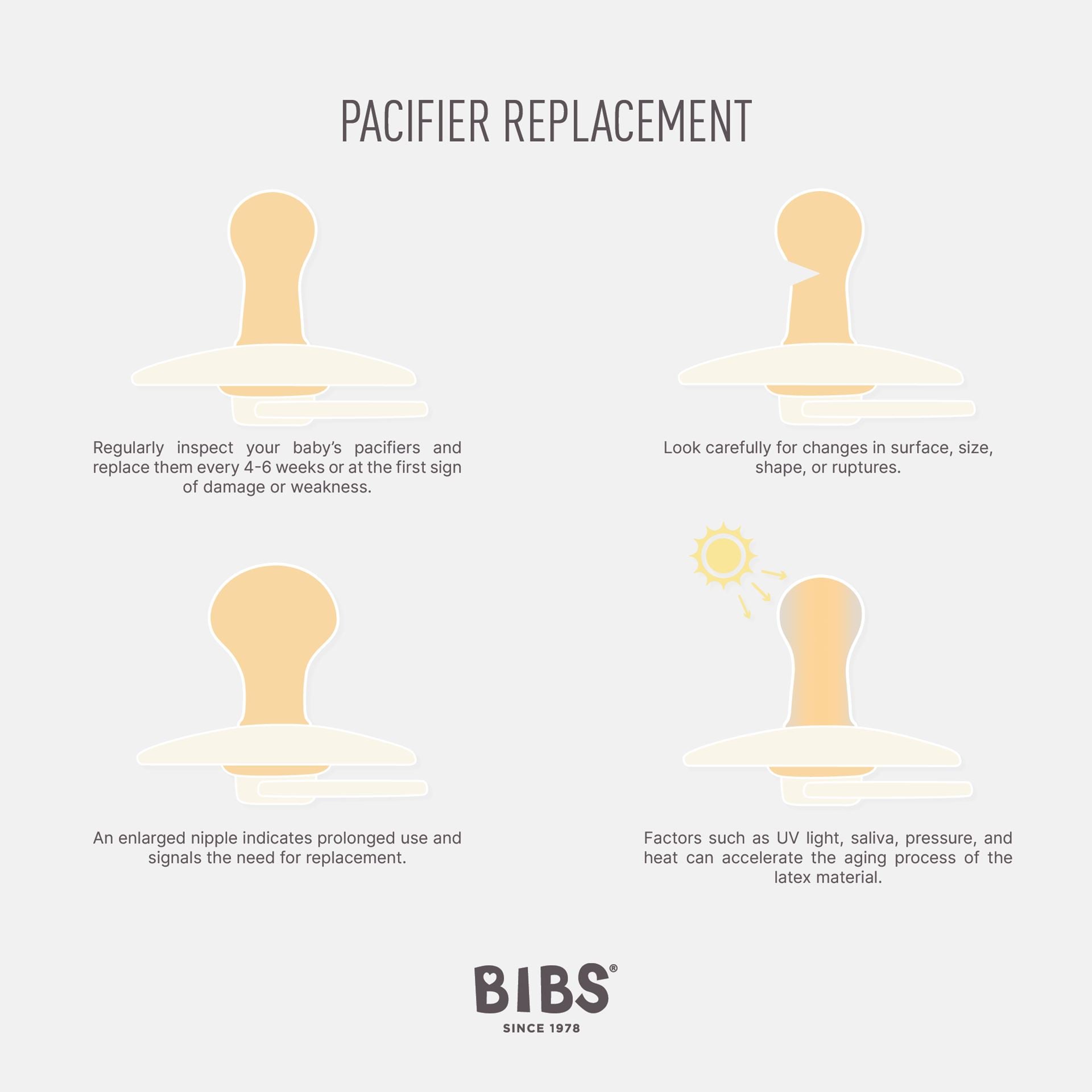 Bibs Colour er klassikeren fra Bibs, laget av naturgummi med rundt skjold og lekre farger. Lengde og fasong er utviklet med tanke på å tilfredsstille barnets sugerefleks. Smokkene er 100 % fri for BPA og PVC, og er produsert i Danmark. Bibs Denmark er et familieeid firma som har produsert smokker i over 40 år, anbefalt av fagfolk og kjent for sitt design, farger og kvalitet.