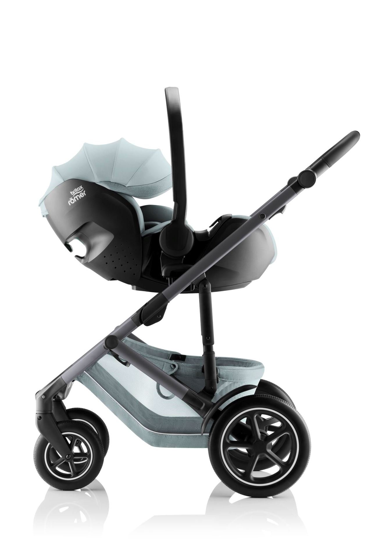 - Kan brukes sammen med Britax Smile barnevogn (adapter følger med vognen), eller med de fleste andre vogner. (Se liste her)
