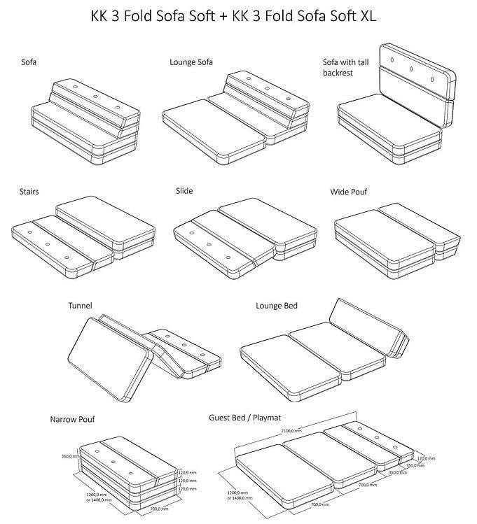 - Kan brukes som sofa, puff, stol, seng, gjestemadrass, lekemadrass