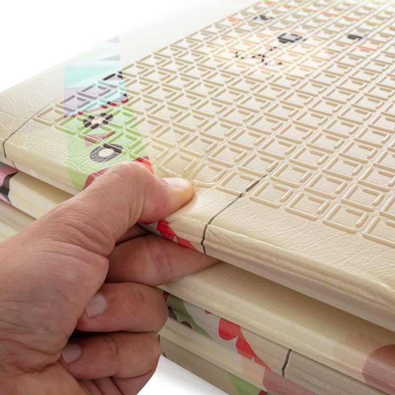Dobbeltsidig Foldbar Lekematte - Elefant & Rev gir babyen din et trygt og behagelig sted å leke. Den er enkel å brette og ta med seg, og har en søt elefant- og revemotiv på begge sider. Perfekt for babyens utvikling og lekebehov.