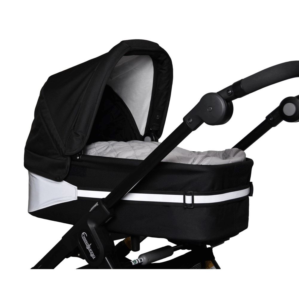 Ofte ser bilistene vognen før de ser deg. Dytter du vognen foran deg er det den som runder en sving først eller er først på overgangen. Derfor er det viktig at vognen er minst like synlig som deg. Vi har derfor laget en refleksbånd med et et ekstra stort part i front for å være ekstra synlig.
