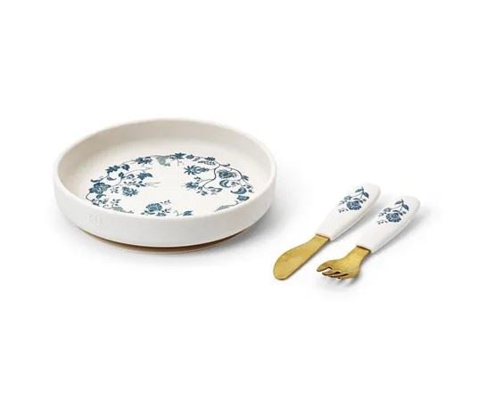 Sett med tallerken og skje til barn, laget i BPA-fri silikongummi - slitesterkt, trygt og perfekt for småbarn. Mykt materiale som tåler daglig bruk og oppvaskmaskin.