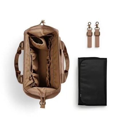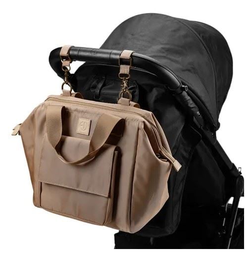 Bruk den lange stroppen for å bære vesken komfortabelt over skulderen, eller fest den til barnevognens håndtak med de medfølgende løkkene.