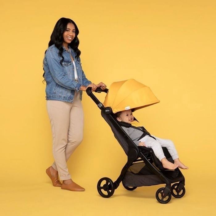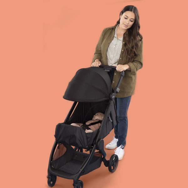 - Enkel én‑hånds sammenlegging - selv med barnet på armen