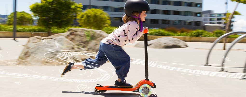 Freerider er i utstyrt med noen ganske kule lys. En liten dynamo aktiverer tre små lys i hvert hjul, som gir blått, grønt og rødt lys i hjulene. Når de snurrer rundt bli det en kul effekt - som barna vil elske.