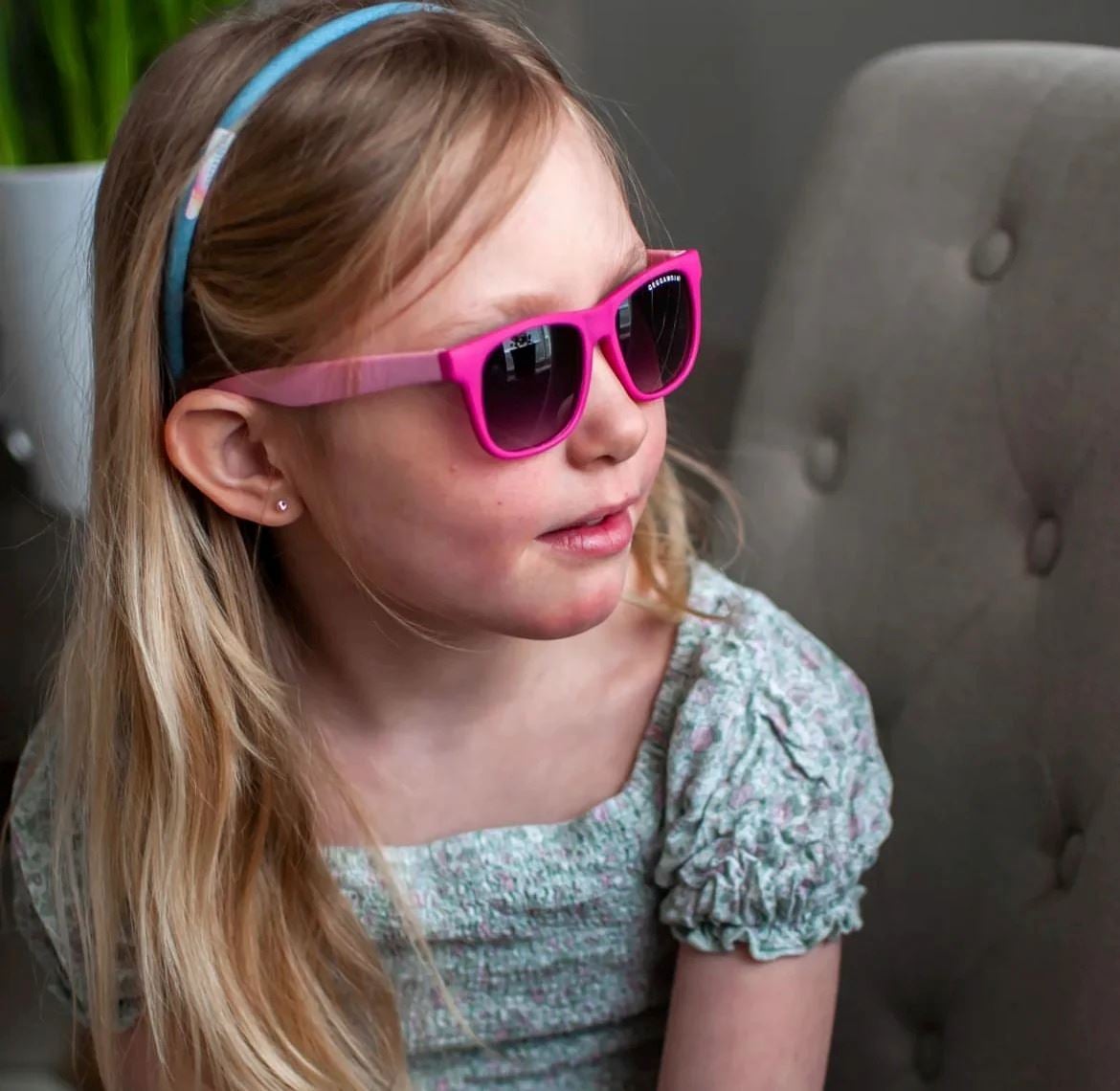 Solbrillene er laget i BPA‑fri plast uten tungmetaller eller skadelige kjemikalier, og leveres med en justerbar snor som holder brillene trygt på plass. Med UV400‑beskyttelse og solkategori 3 får barnet optimal skjerming mot sterke solstråler, enten det er på stranden, i barnehagen eller på tur.