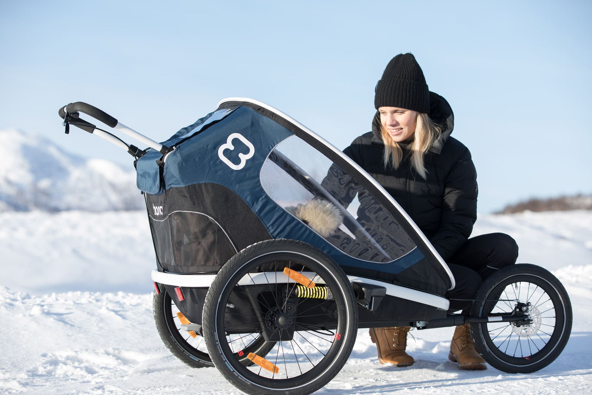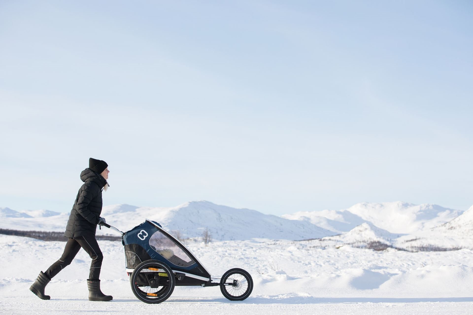 Gjør din Hamax Outback Double eller Hamax Outback One om til en joggevogn. Joggehjulet gir stabilitet, komfort og enkel manøvrering på løpeturer og turer i variert terreng.
