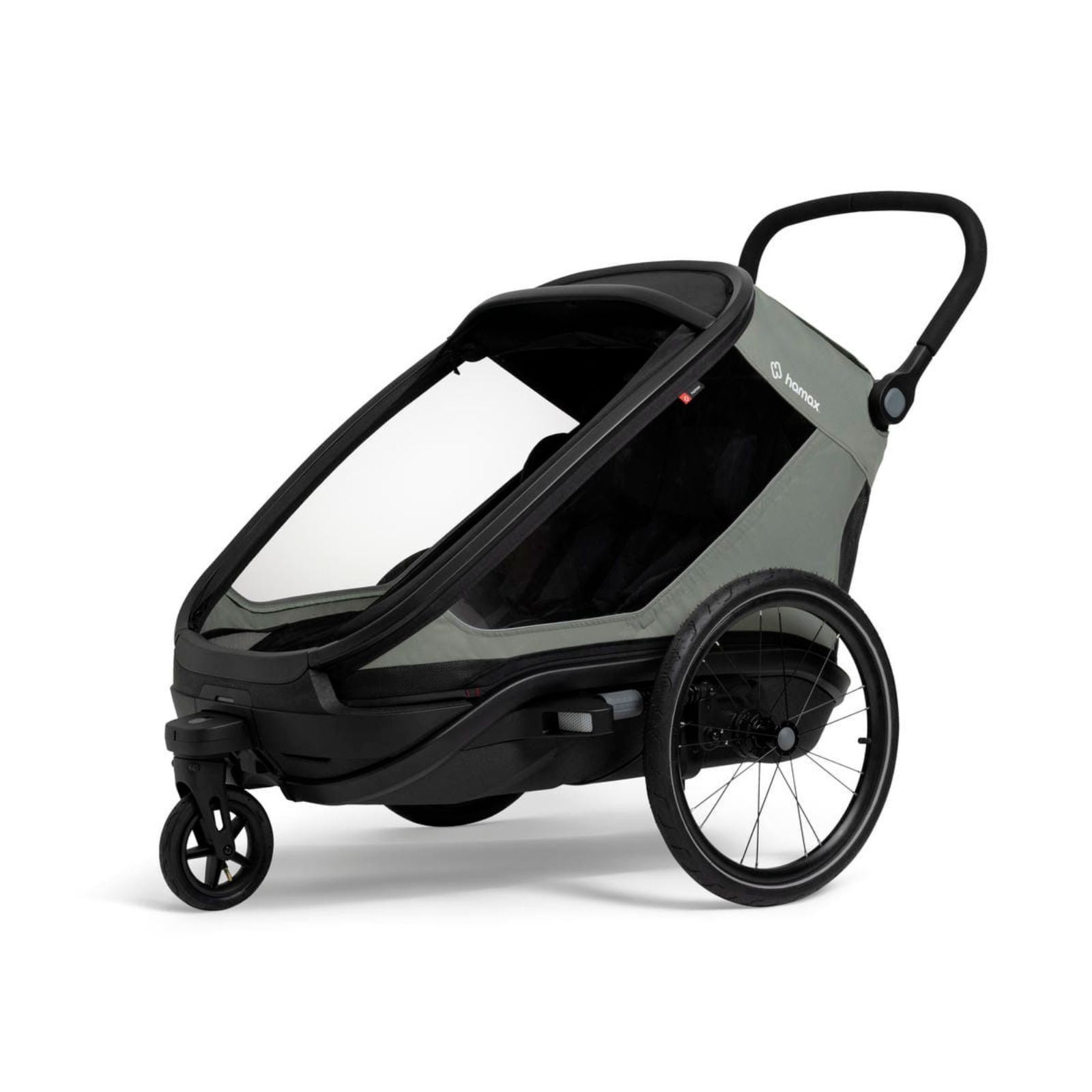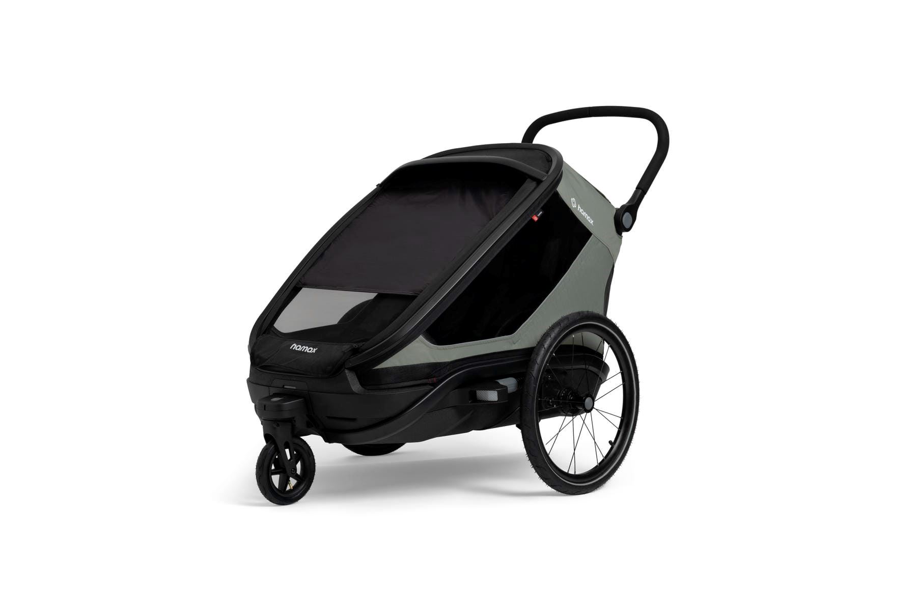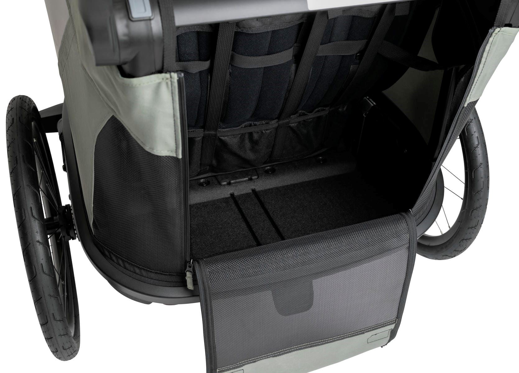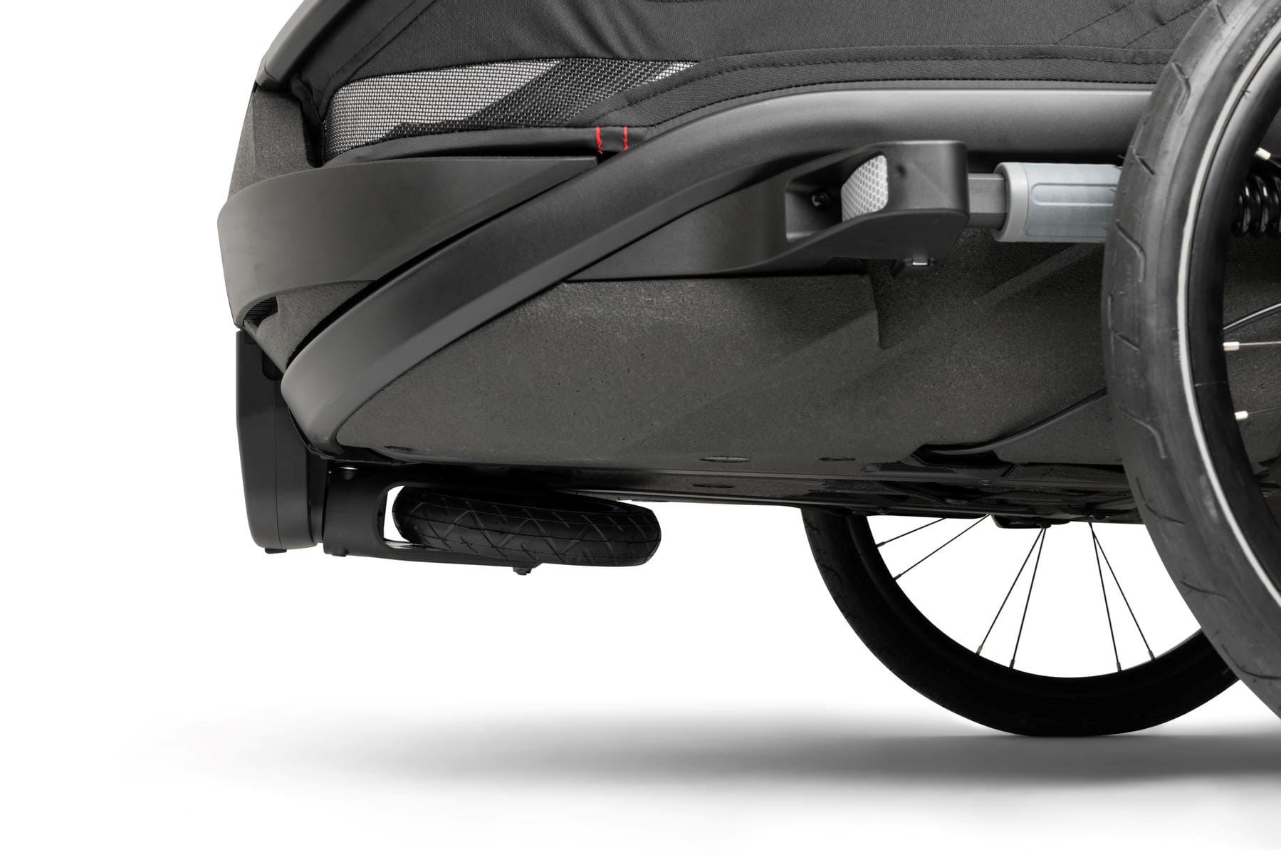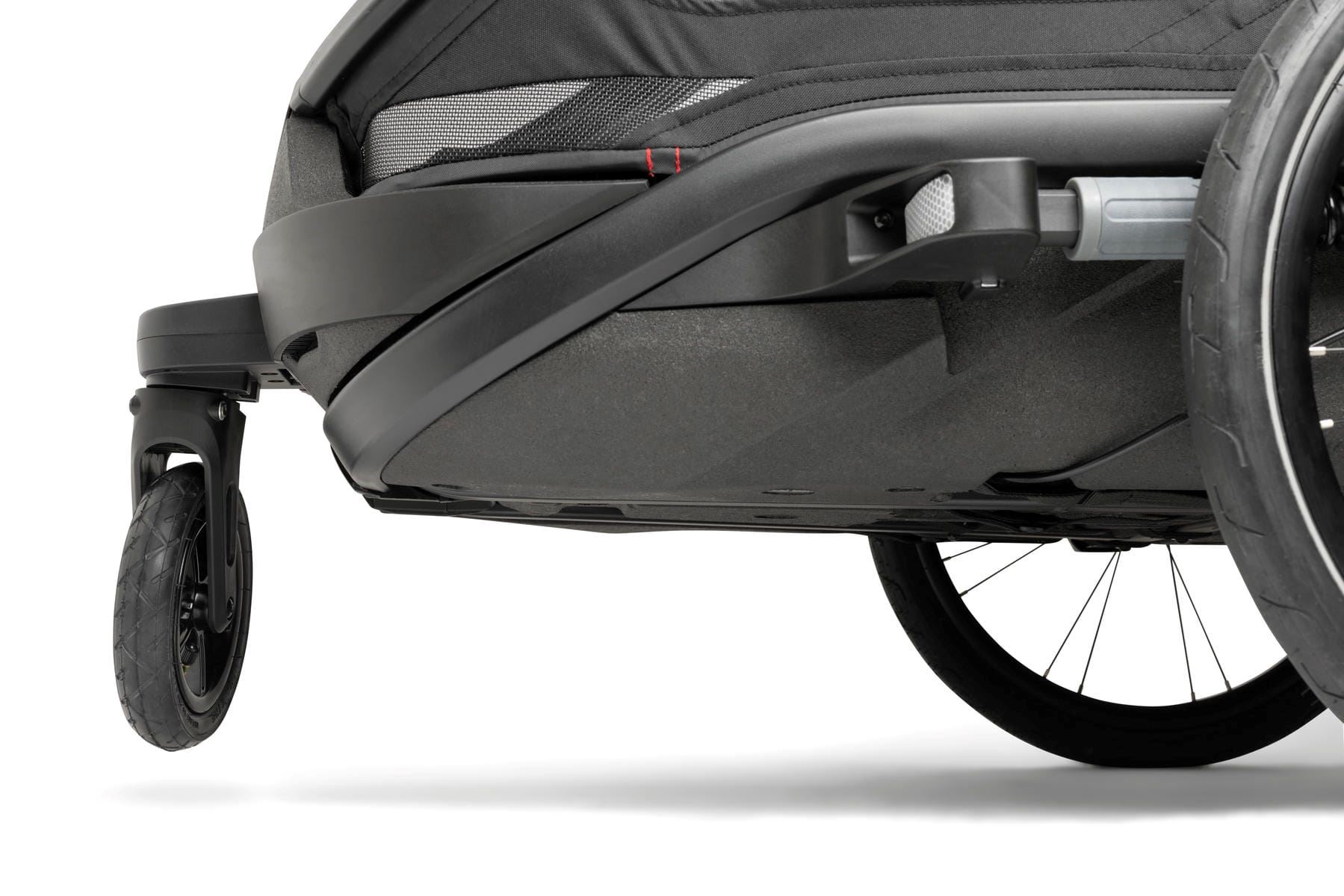 Outback Next har komfortable seter som kan legges tilbake i fire posisjoner, justerbar fjæring både foran og bak, og et solid chassis som gir en stabil og behagelig tur – også bak elsykkel. Modusbytte mellom sykkel, trille, jogg og pulk gjøres raskt og intuitivt, og vognen har et stort bagasjerom med hele 8 kg kapasitet. Med luftfylt strollerhjul, god ventilasjon, insektnett og solskjerm er dette en vogn som fungerer i all slags vær og terreng.