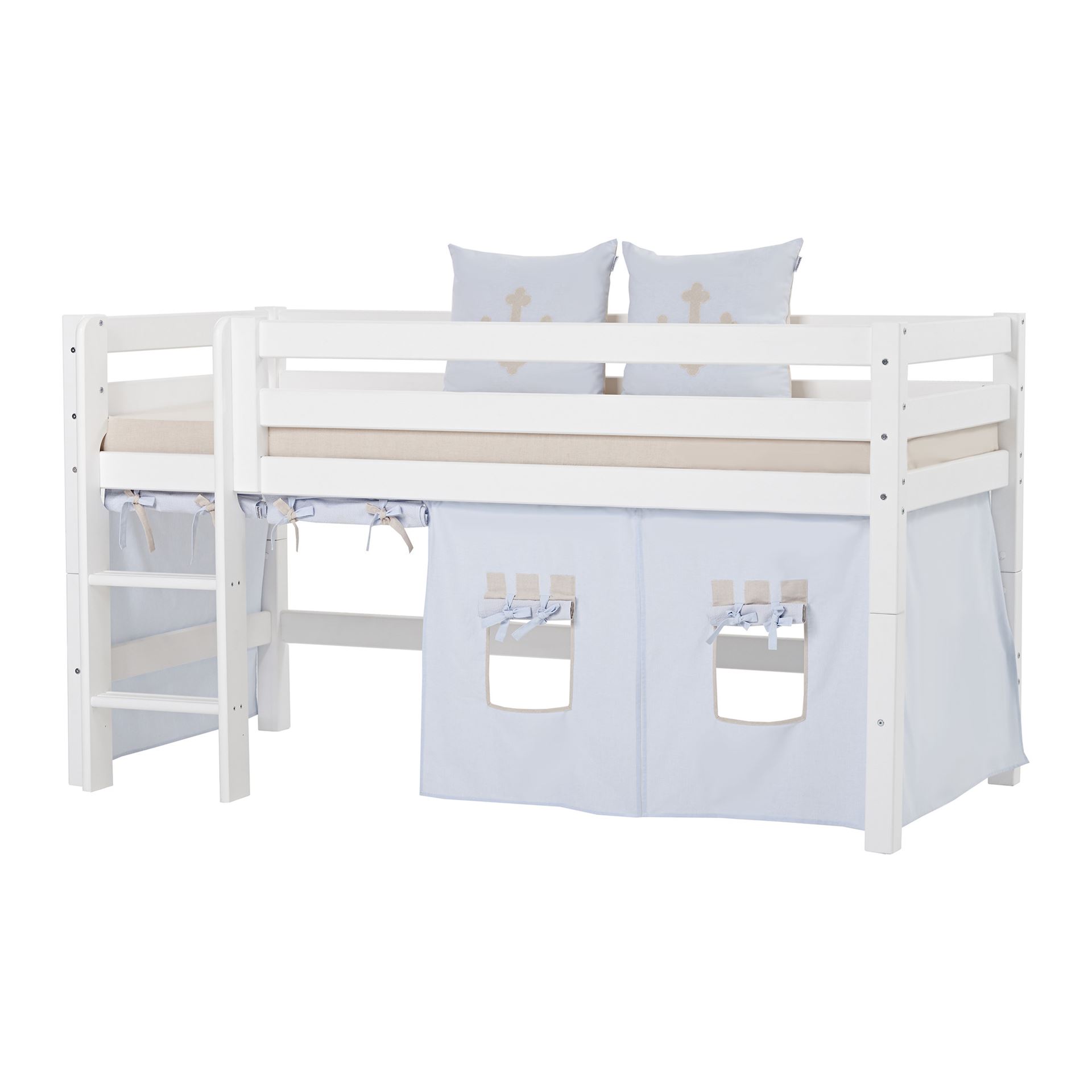 Halvhøy juniorseng, inklusive rett stige, i toppserien ECO Luxury fra Hoppekids.