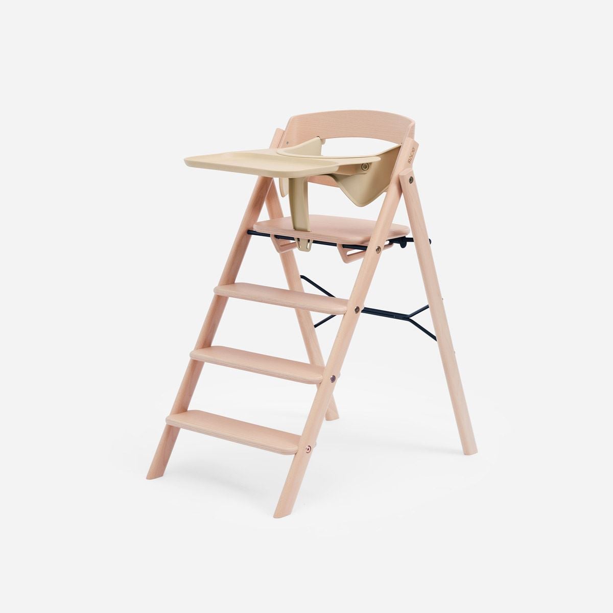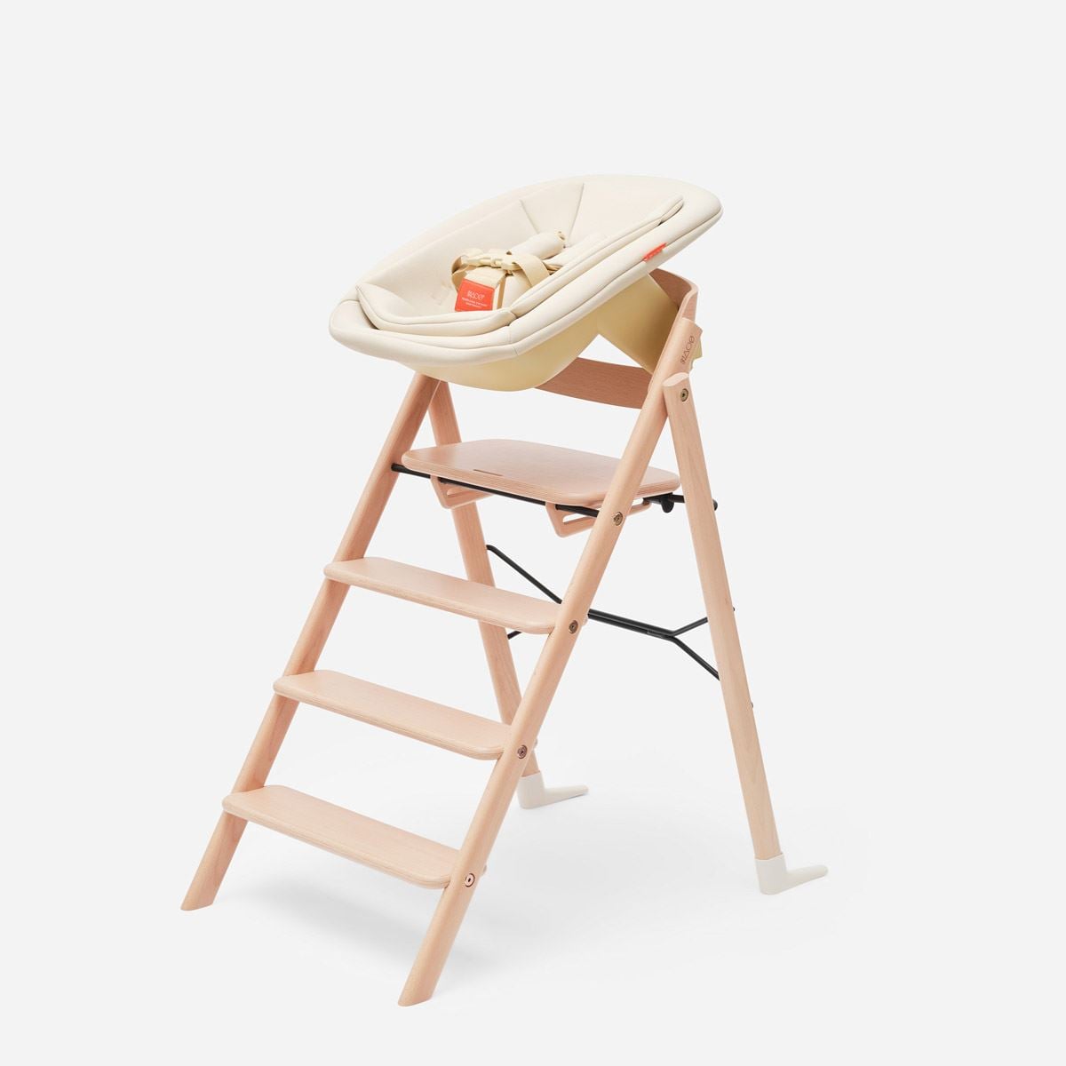 KLAPP-stolen er laget av FSC-sertifisert bøk fra europeisk skogbruk og produsert i Latvia med fokus på kvalitet og holdbarhet. Den komplette pakken inkluderer nyfødtsete, bøyle, spisebrett, putesett og sele – alt designet for å gi optimal komfort og sikkerhet i alle aldre.