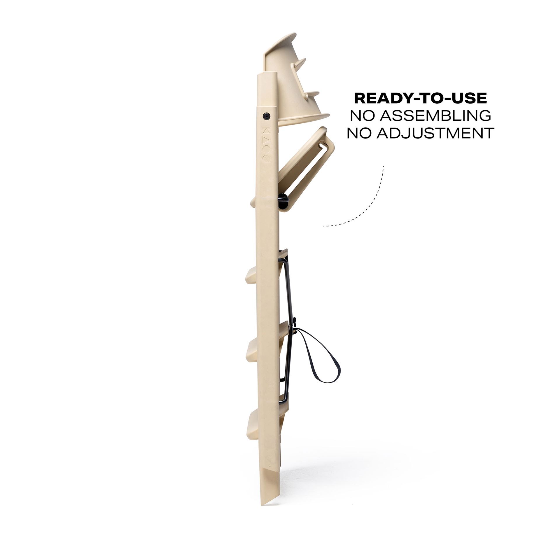 KAOS KLAPP Barnestol vokser med barnet og gir en dynamisk sittestilling uten behov for justeringer. Den er enkel å rengjøre med en fuktig klut, og kan brukes både som spisestol ved bordet, som en fleksibel barnestol i stuen eller ute på verandaen. Når den ikke er i bruk, foldes den flatt sammen og tar minimalt med plass.