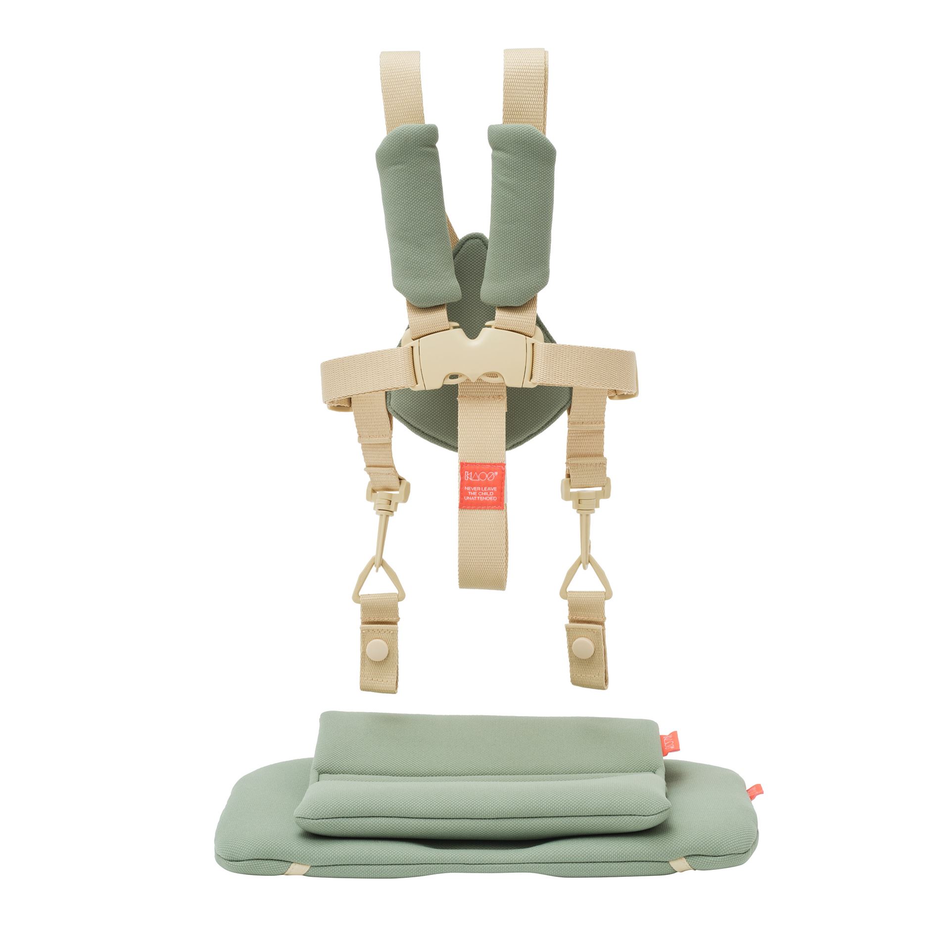 Settet er laget av resirkulerte og slitesterke materialer som tåler daglig bruk. Stoffet er mykt mot huden, samtidig som det gir god støtte og holder formen over tid. Designet er skreddersydd for KAOS KLAPP barnestolen og matcher stolens uttrykk i både funksjon og stil. Et praktisk og nødvendig tilbehør for små barn som bruker KLAPP-stolen daglig.