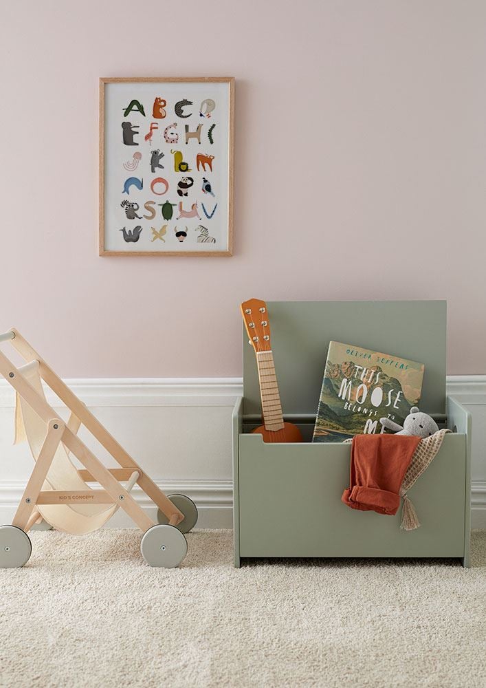 Fin dukkevogn i tre, perfekt for rollelek - når du skal på tur med kosedyr eller dukker. Pastellfargede gummierte hjul gir dukkevognen et ekstra lekkert - og stillegående design