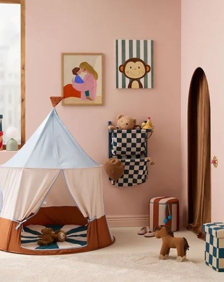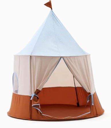 Kids Concept Sirkus Leketelt i rosa gir barnet et koselig sted å leke, lese eller trekke seg tilbake. Teltet åpner seg automatisk når det tas ut av bærevesken, og de svakt innoverlente veggene skaper en lun og trygg atmosfære inspirert av klassiske sirkustelt. Det myke polyesterstoffet i koordinerte blokkfarger kombinert med et prikkemønstret tak gir teltet et moderne og harmonisk uttrykk som passer inn i alle rom.