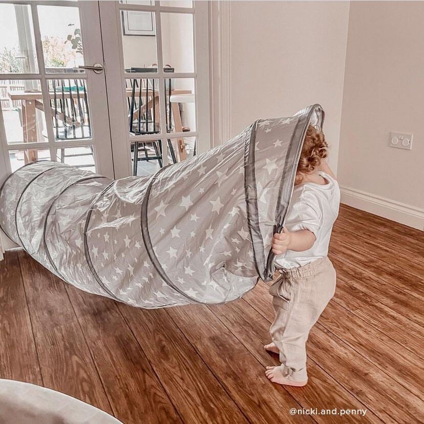 Morsom leketunell tunelltelt, som er perfekt til å gjemme seg i, eller krype raskt gjennom. Sett den gjerne foran leketeltet. Lett å slå sammen og oppbevare.