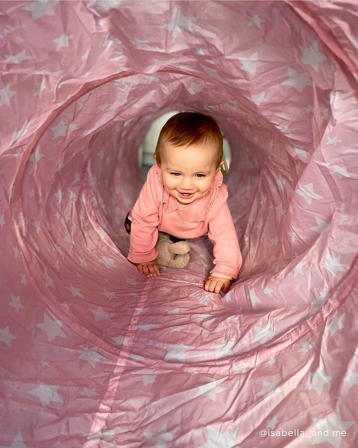 Morsom leketunell tunelltelt, som er perfekt til å gjemme seg i, eller krype raskt gjennom. Sett den gjerne foran leketeltet. Lett å slå sammen og oppbevare.