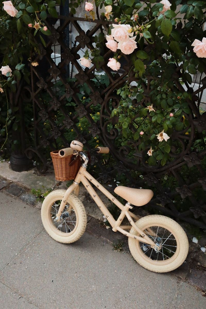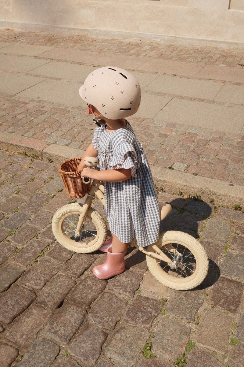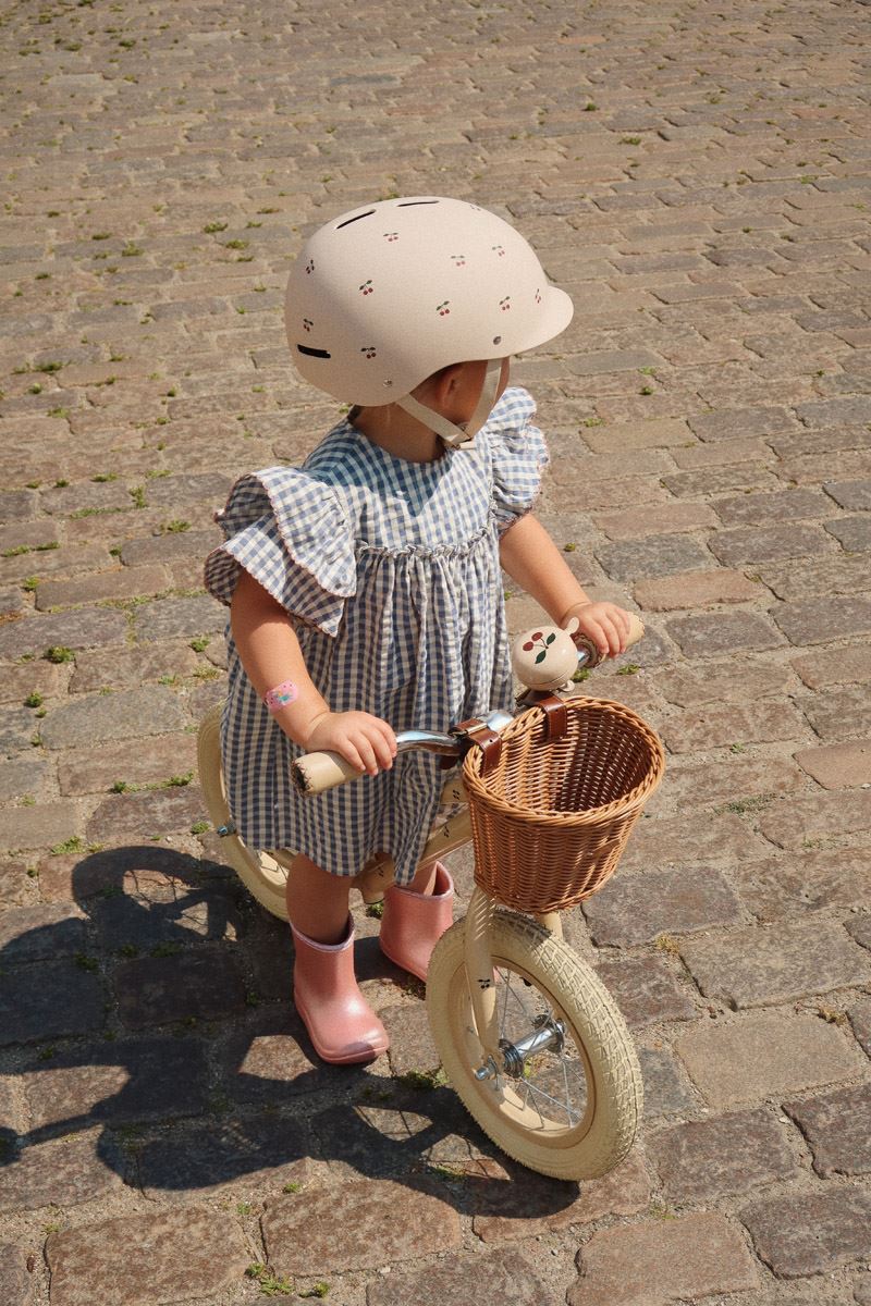 Kongens Sløjd Balansesykkel Cherry er en nydelig og gjennomført løpesykkel laget for barn som skal lære balanse på en trygg og morsom måte. Den lette stålrammen gjør sykkelen enkel å manøvrere, mens det justerbare setet og styret gjør at sykkelen kan vokse med barnet. Med gummihjul som ruller jevnt, en klassisk flettet kurv og en liten ringeklokke, får barnet en komplett og inspirerende første sykkelopplevelse.