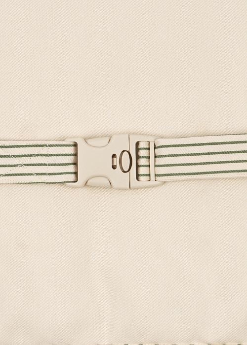 En praktisk og gjennomtenkt bilorganizer fra Kongens Sløyd som gjør bilturer og ferier mer behagelige for både barn og voksne. Organizerens justerbare stropper festes enkelt til bilsetet, og den har en egen lomme for nettbrett samt flere lommer i ulike størrelser til leker, flasker og andre nødvendigheter. En av lommene er spesielt designet for våtservietter, og en elastisk stropp med borrelås gjør det mulig å feste en aktivitetsleke eller smokkeboks.