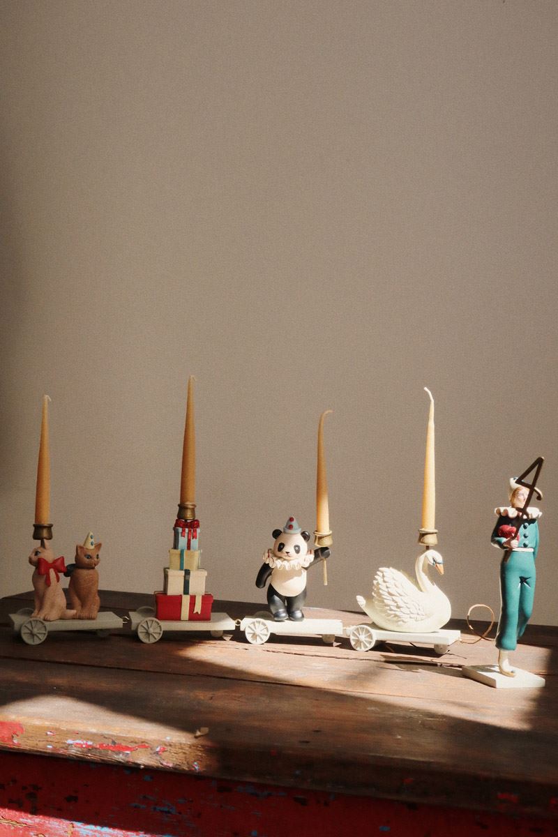 Et nydelig håndlaget bursdagstog fra Kongens Sløyd som skaper en magisk stemning på bursdagsbordet. Toget kan brukes år etter år og blir et kjært minne i familien. Leveres med tall og lysestake, og er kun ment som dekorasjon.