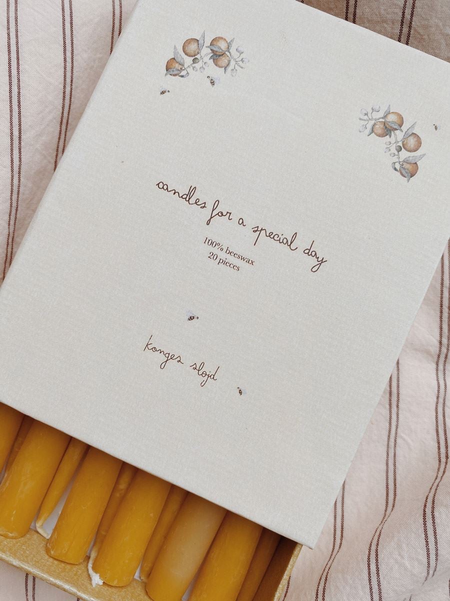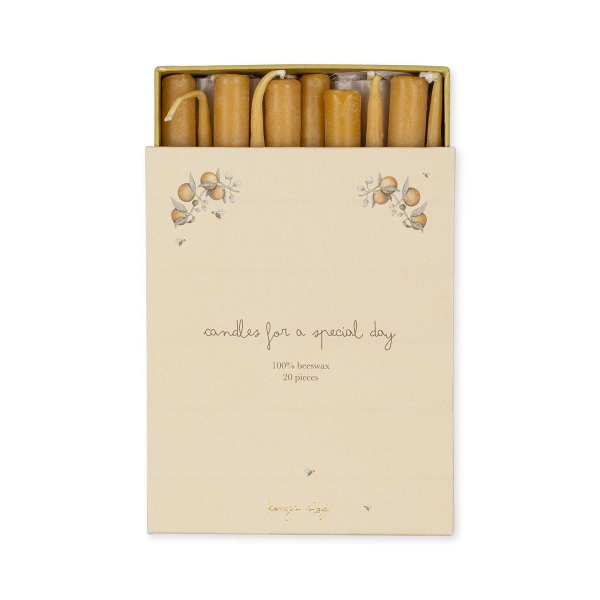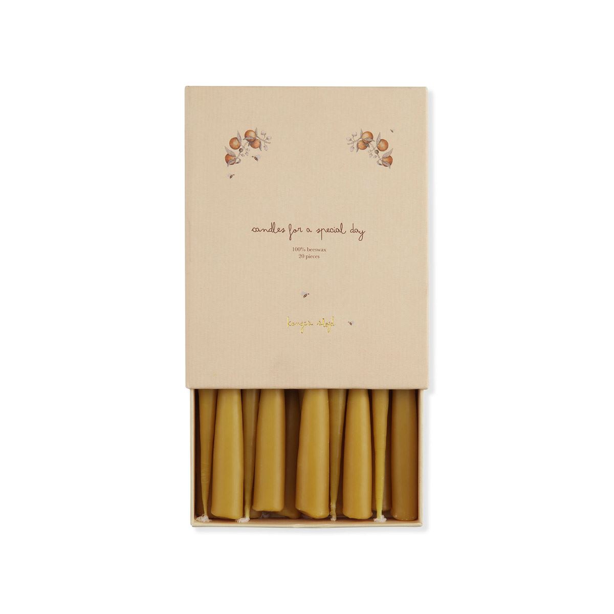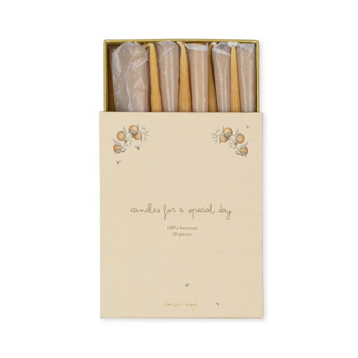 Denne 20-pakken med naturfargede bursdagstoglys fra Kongens Sløyd er laget i 100% naturlig bivoks med bomullsveke. Lysene passer perfekt i bursdagstoget og brenner jevnt i omtrent to timer. Fri for parafin og kjemikalier – et naturlig og dekorativt valg til feiringen.