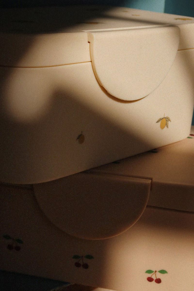 Matboksen fra Kongens Sløyd er laget i en kombinasjon av silikon og polypropylen (PP), og er designet for trygg og praktisk bruk i hverdagen. Lokk og boks tåler oppvaskmaskin, og lokket kan brukes i mikrobølgeovn. Silikondelene tåler temperaturer fra -40°C til 230°C, mens boksen og skilleveggen ikke skal varmes over 70°C ved kontakt med mat. Matboksen er testet og godkjent etter EU-standarder for matsikkerhet.