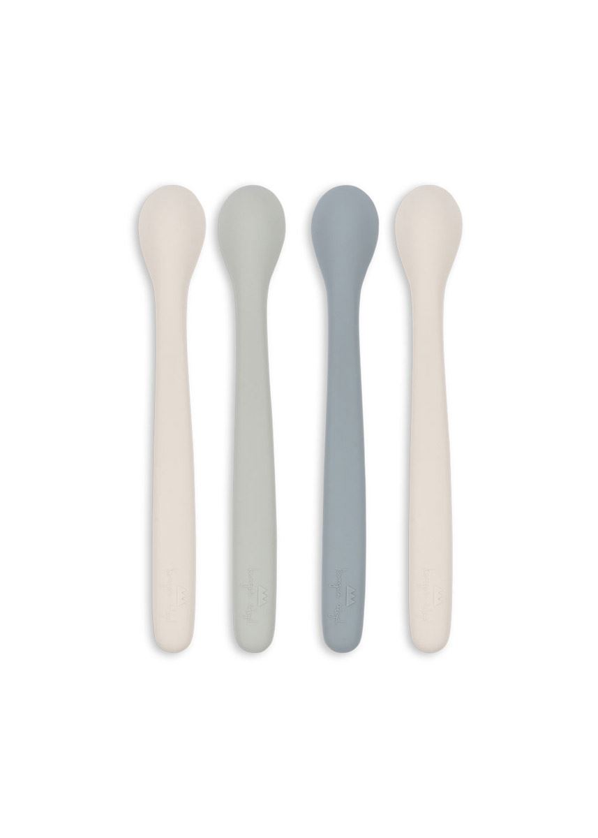 Et praktisk sett med fire myke mateskjeer fra Kongens Sløyd, laget for å gjøre introduksjonen til fast føde enklere og mer behagelig. Skjeene har ergonomiske håndtak som gir godt grep for små hender, og den myke silikonen er skånsom mot ømfintlige gommer. Perfekt til både grøt, mos og de første smakene.