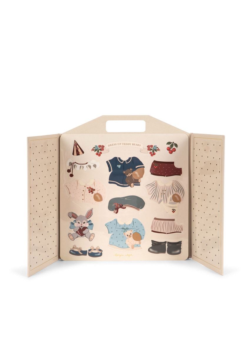 My Sticker World fra Kongens Sløyd er en herlig og fantasifull klistremerkebok som inviterer barna inn i en verden av lek og kreativitet. Boken har vakre illustrasjoner og søte teddybjørner som elsker å kle seg ut. De gjenbrukbare klistremerkene kan festes, tas av og brukes igjen – perfekt for små hender som liker å utforske og skape egne historier.