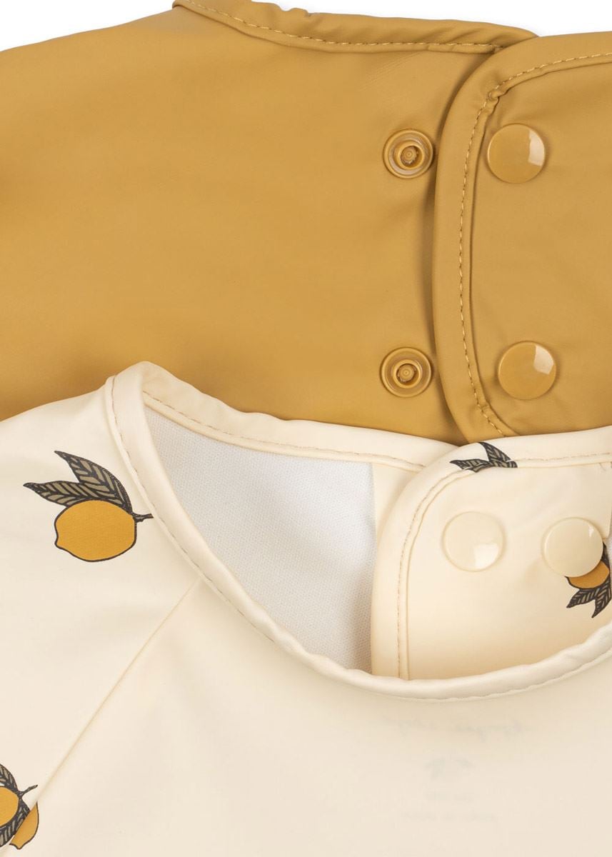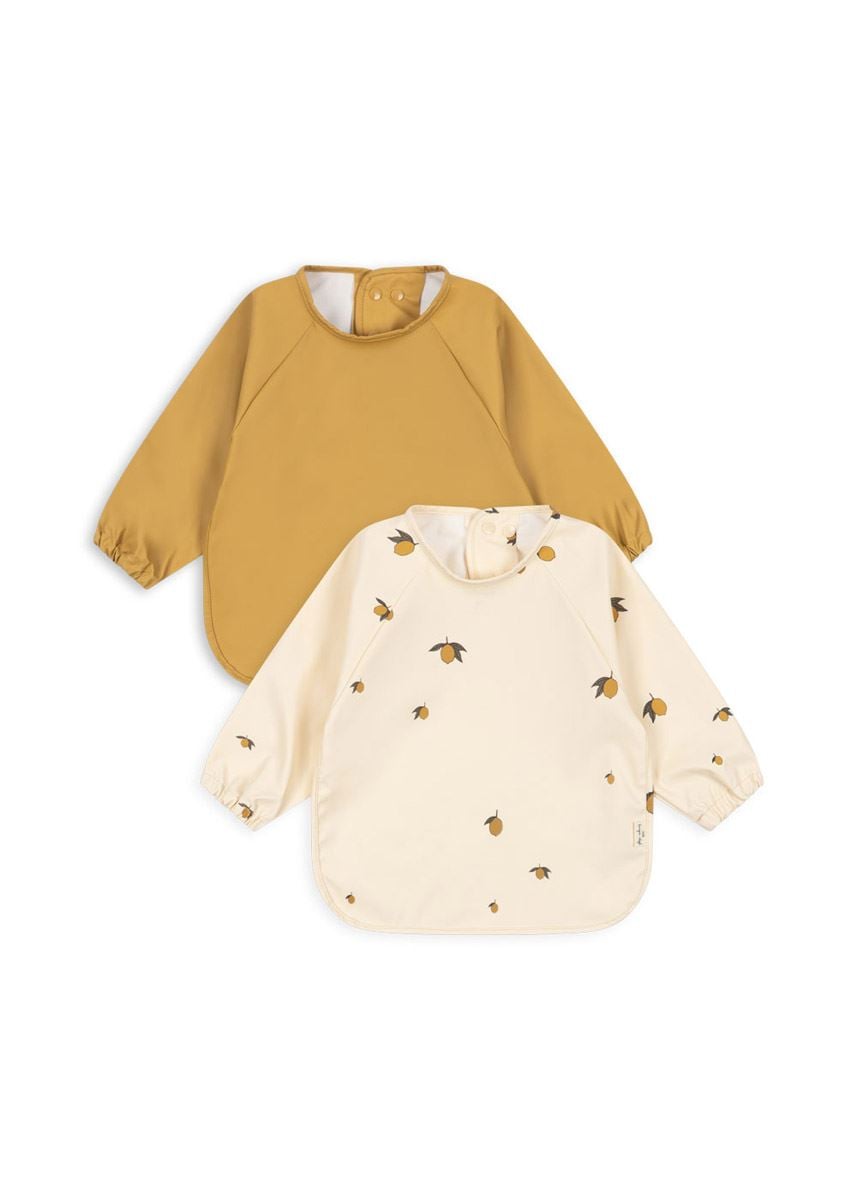 Spiseforkle med ermer fra Kongens Sløyd kommer i en praktisk 2-pakning med ulike farger og print. De lange ermene gir ekstra beskyttelse under måltider og kreative aktiviteter, og materialet kan enkelt tørkes av med en våt klut. Et funksjonelt og hverdagsvennlig valg for små barn som liker å utforske maten sin.