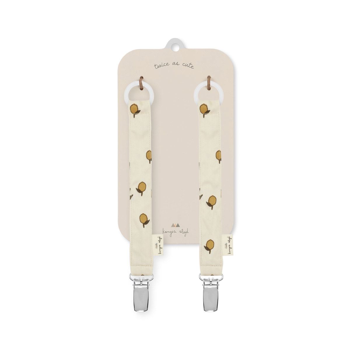 Smokkelenke – 2 pk fra Kongens Sløyd er et praktisk hjelpemiddel som sørger for at smokken ikke faller på gulvet eller blir borte. Laget i 100% økologisk bomull og godkjent etter CE og EN 12586-standarden. En trygg og funksjonell løsning i en travel hverdag med små barn.