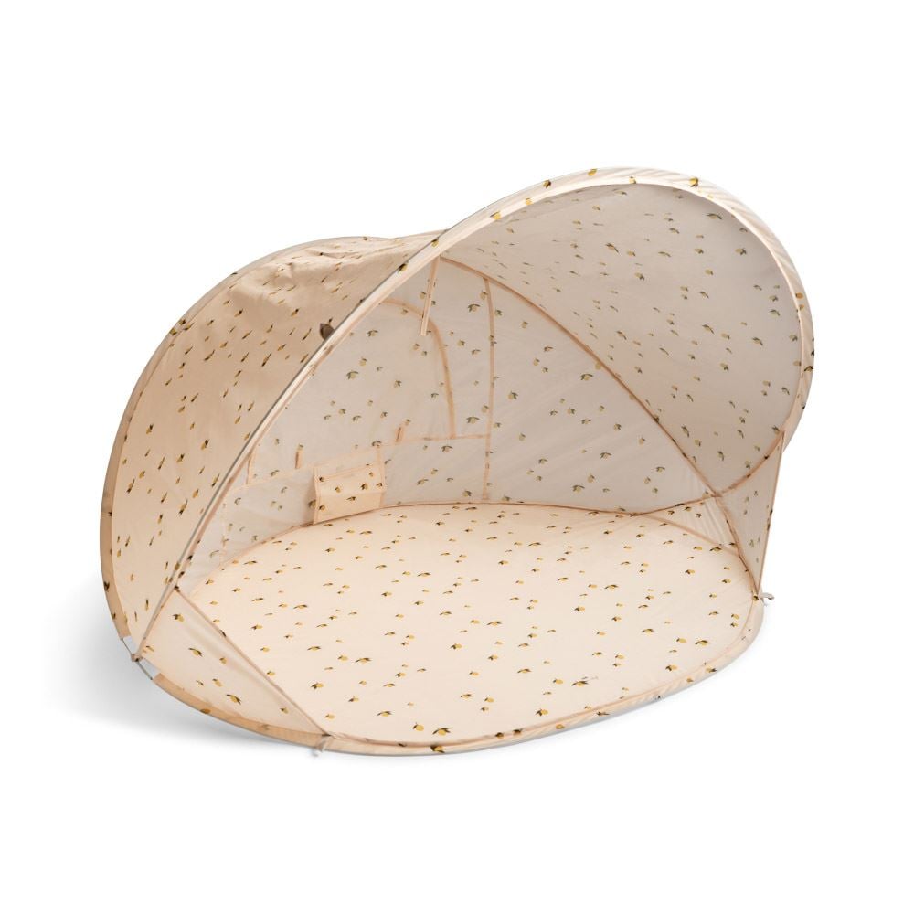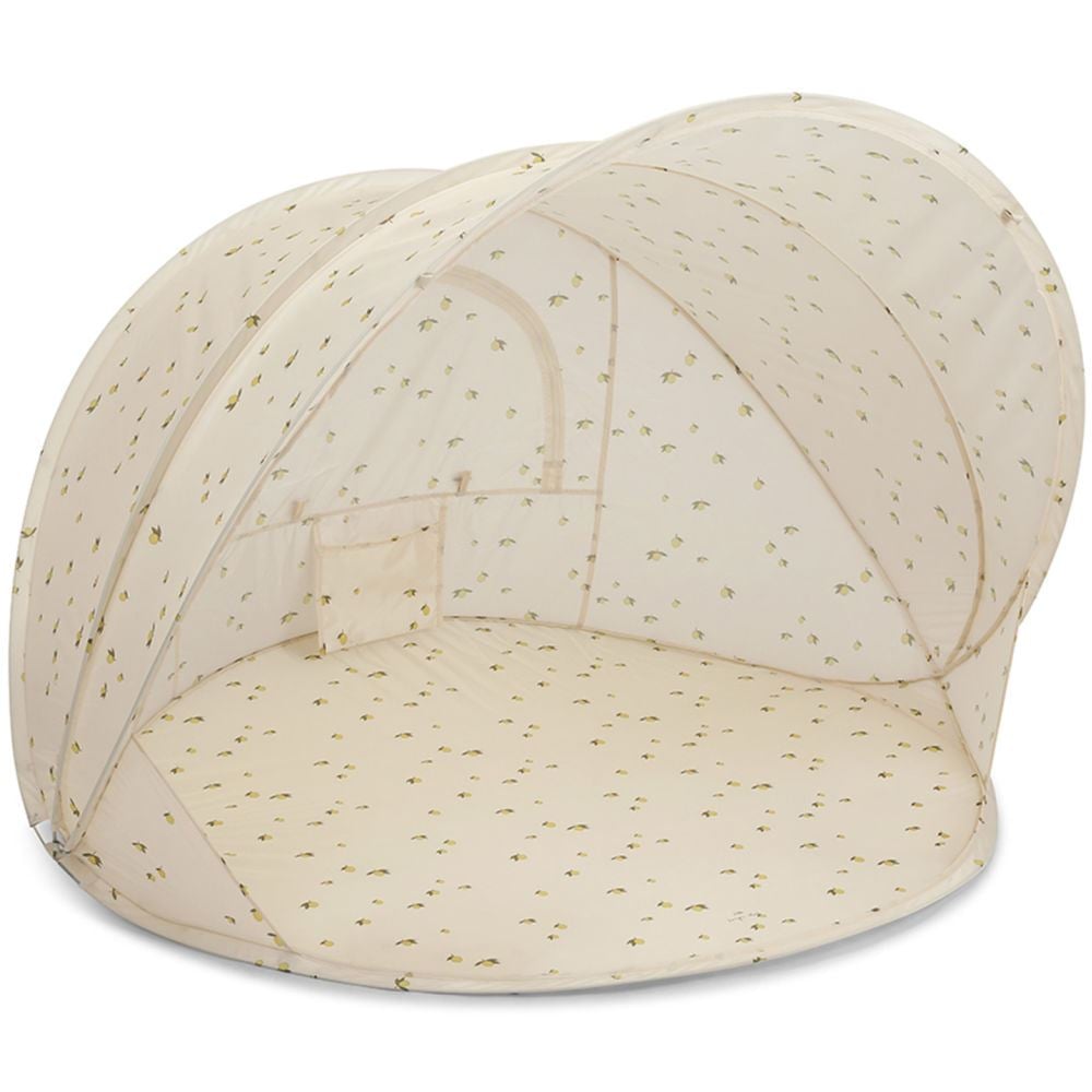 Et smart og romslig pop-up strandtelt fra Kongens Sløyd som gir barnet et trygt og skyggefullt sted på stranden eller i hagen. Teltet åpner seg automatisk når du slipper det, og er enkelt å brette sammen igjen ved hjelp av QR-instruksjonen som følger med. Gir høy UV-beskyttelse med UPF 50+ og er perfekt for små som trenger en pause fra solen.