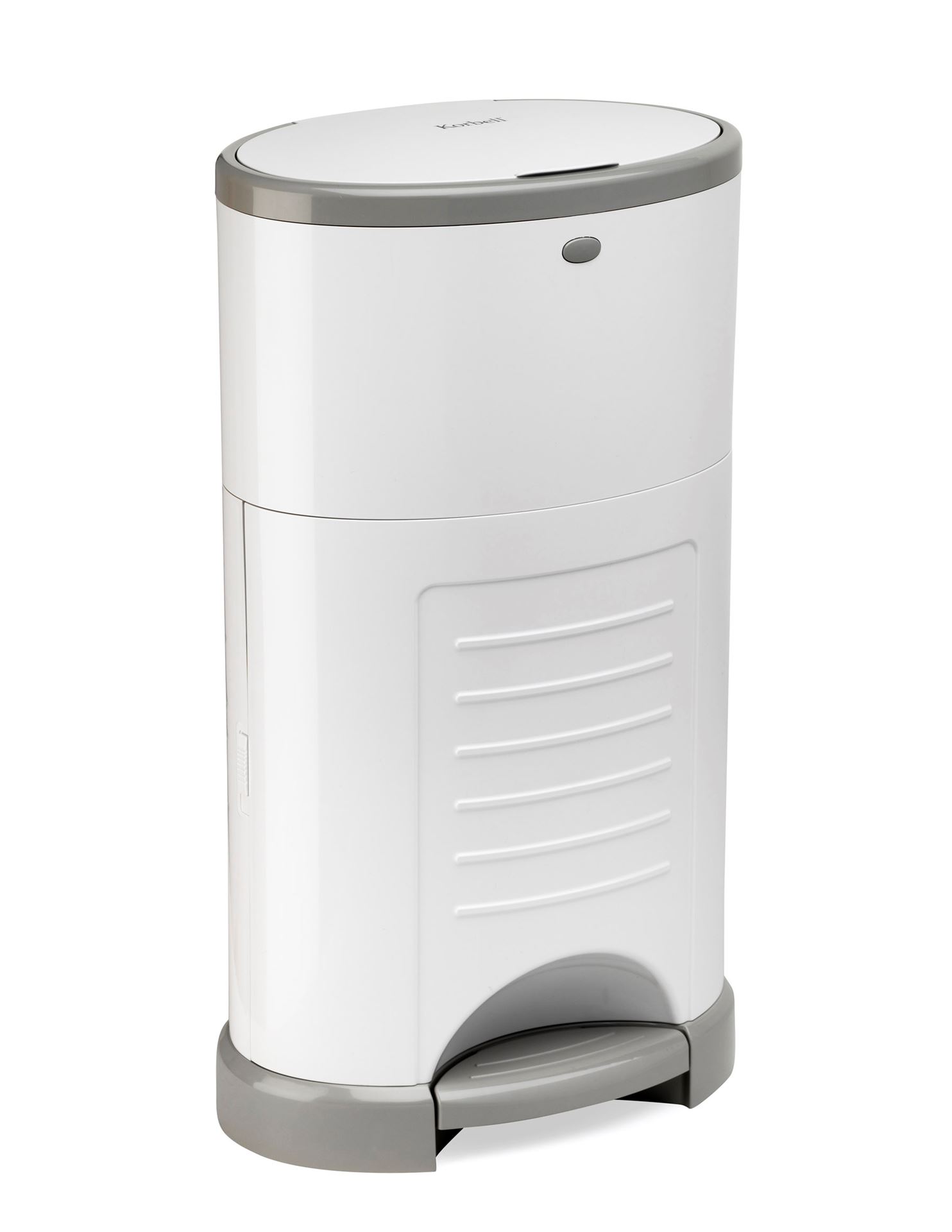 Korbell Bleiebøtte Classic er en brukervennlig og hygienisk løsning for bleieavfall, med et smart step-and-drop system. Trykk på fotpedalen, så åpner lokket seg og du kan slippe bleien ned – helt uten å bruke hendene. Den nye modellen har større kapasitet (20 liter) og en bredere åpning (195 x 90 mm), som gjør det enklere å kaste bleier. Lokket lukkes stille takket være en innebygd demper, og den doble luktsperren holder uønsket lukt effektivt inne.