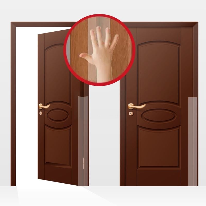 Klemsikring for bruk på innsiden av døren. Praktisk barnesikring som passer de fleste dører. Enkel å montere med medfølgende teip.