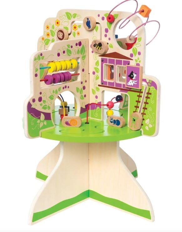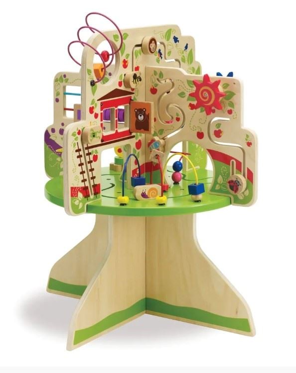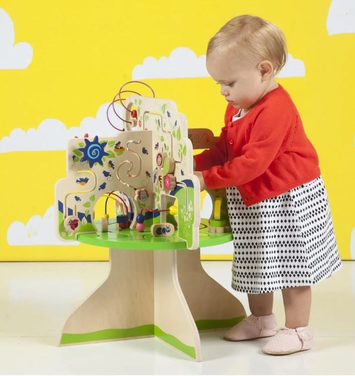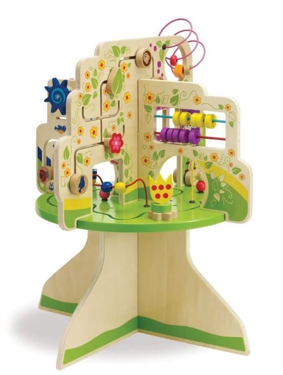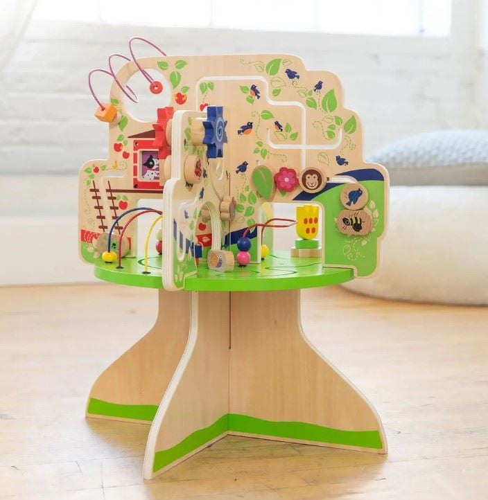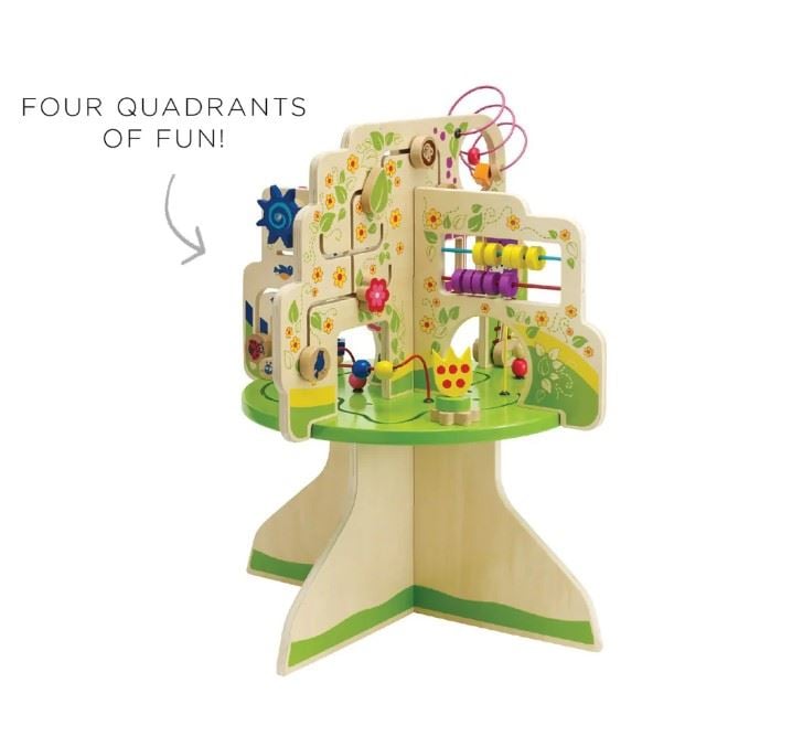 Tid for eventyr med dette aktivitetsbordet med tretema! Tree Top Adventure fra Manhattan Toy byr på fire lekesoner med dyreinspirerte glidere, snurrehjul, fargerike kulebaner og en klikkende kule‑abakus. Bordet gir variert lek som stimulerer finmotorikk, hånd‑øye‑koordinasjon og problemløsning, og kan brukes sittende, knelende eller stående. Perfekt for barnerommet eller lekehjørnet – og en flott gaveidé til ettårsdagen.