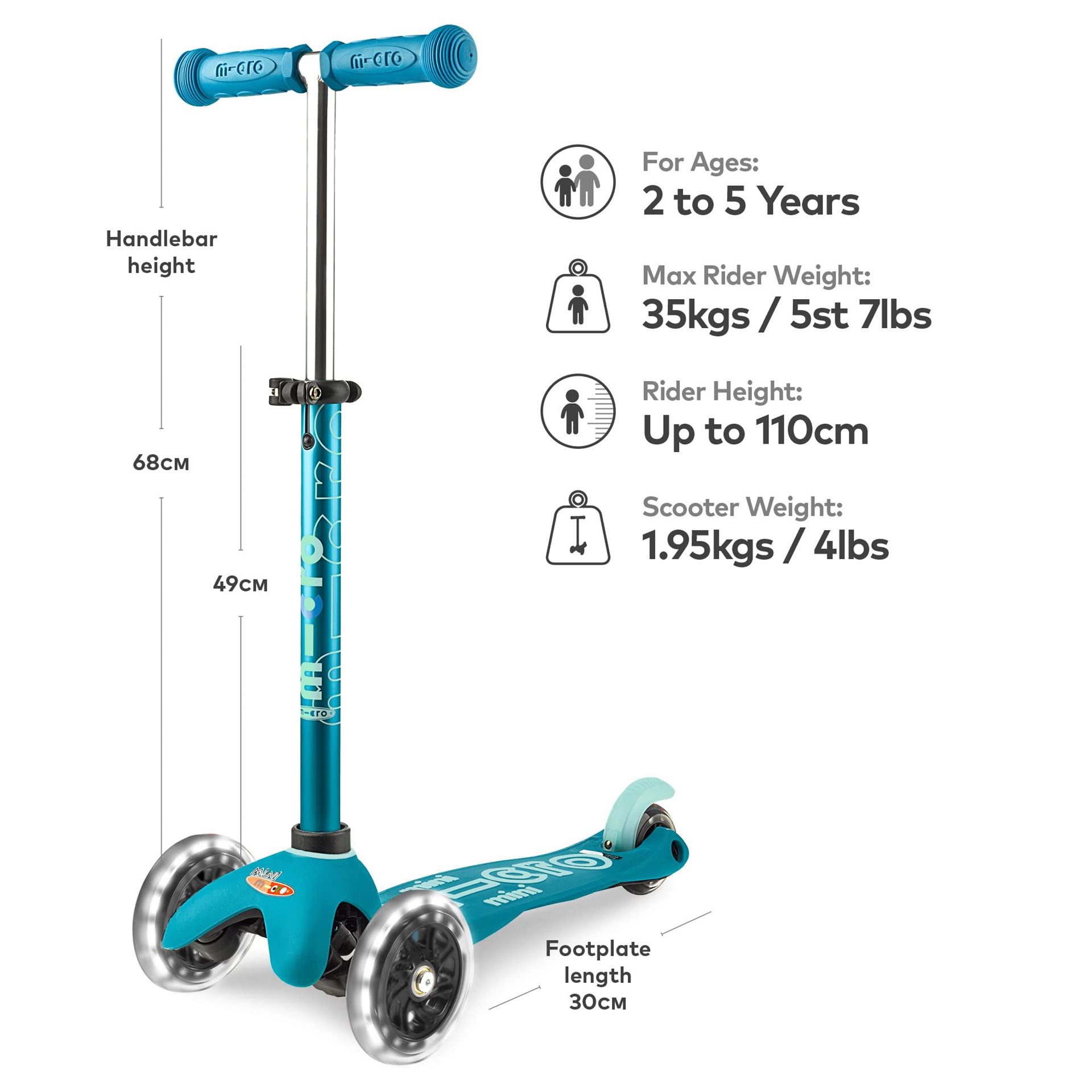 UTGÅTT! Micro Mini Deluxe LED Sparkesykkel Barn, Aqua