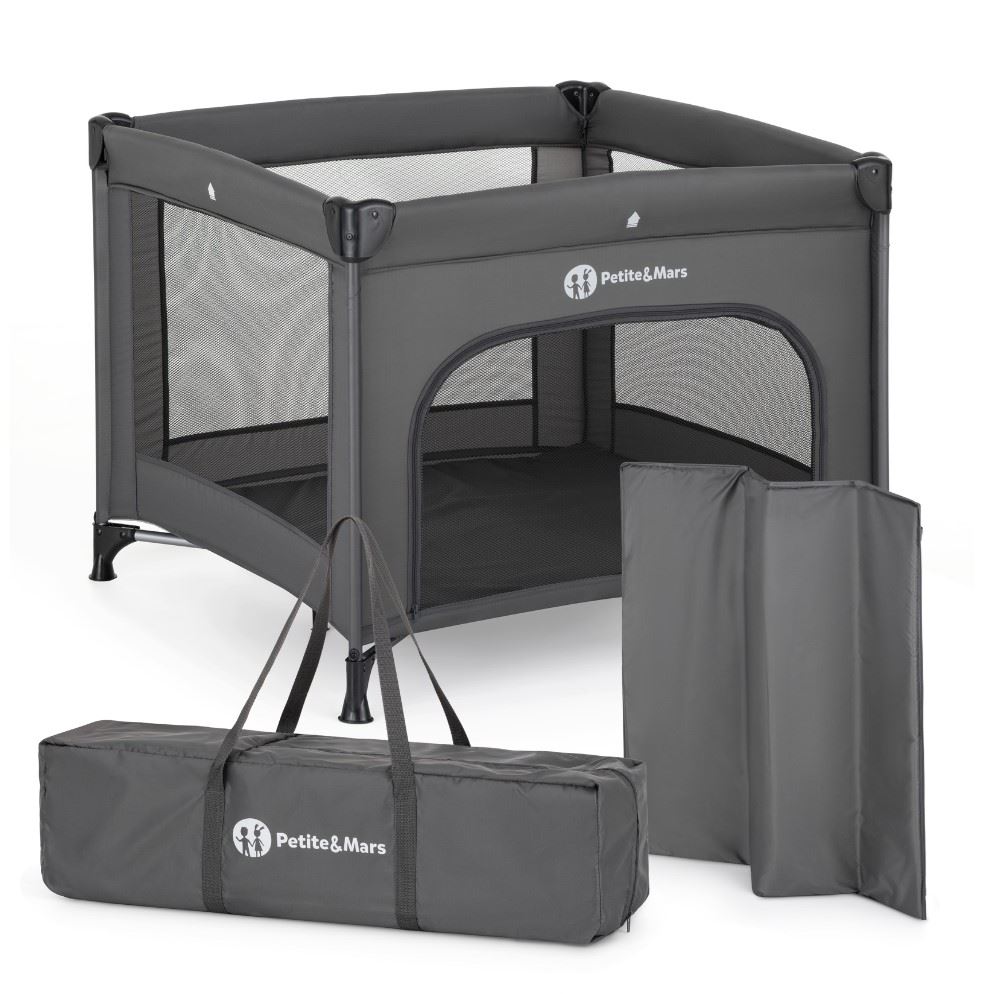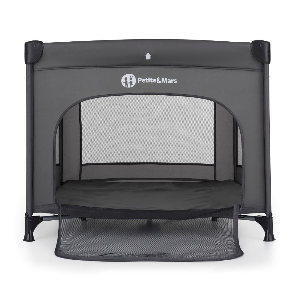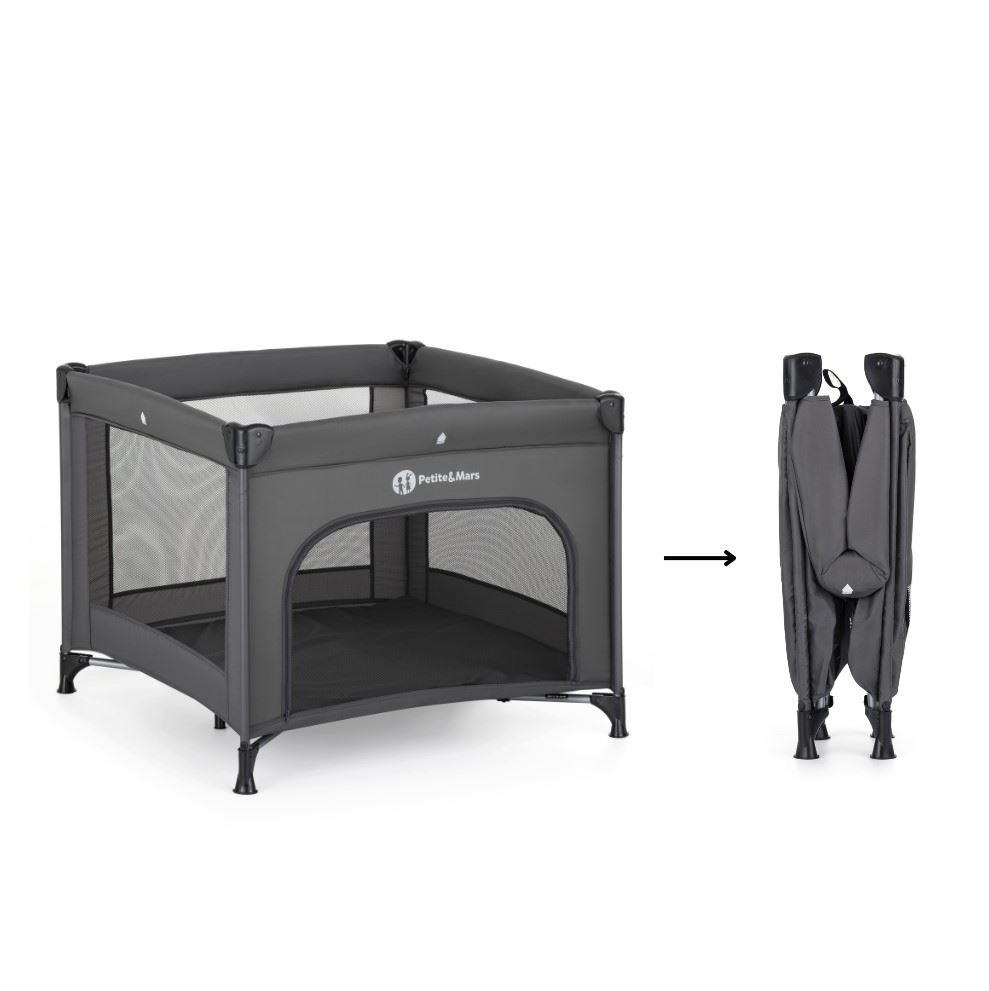 Petite&Mars Nook Urban er en stabil og romslig lekegrind som gir barnet et trygt område for både lek og korte hvilestunder. Den solide rammen og de luftige mesh-panelene skaper et oversiktlig og behagelig miljø, samtidig som du alltid har god visuell kontakt med barnet. Den praktiske sideåpningen gjør det enkelt for større barn å krype inn og ut selv, og det moderne mørkegrå designet passer sømløst inn i alle hjem.