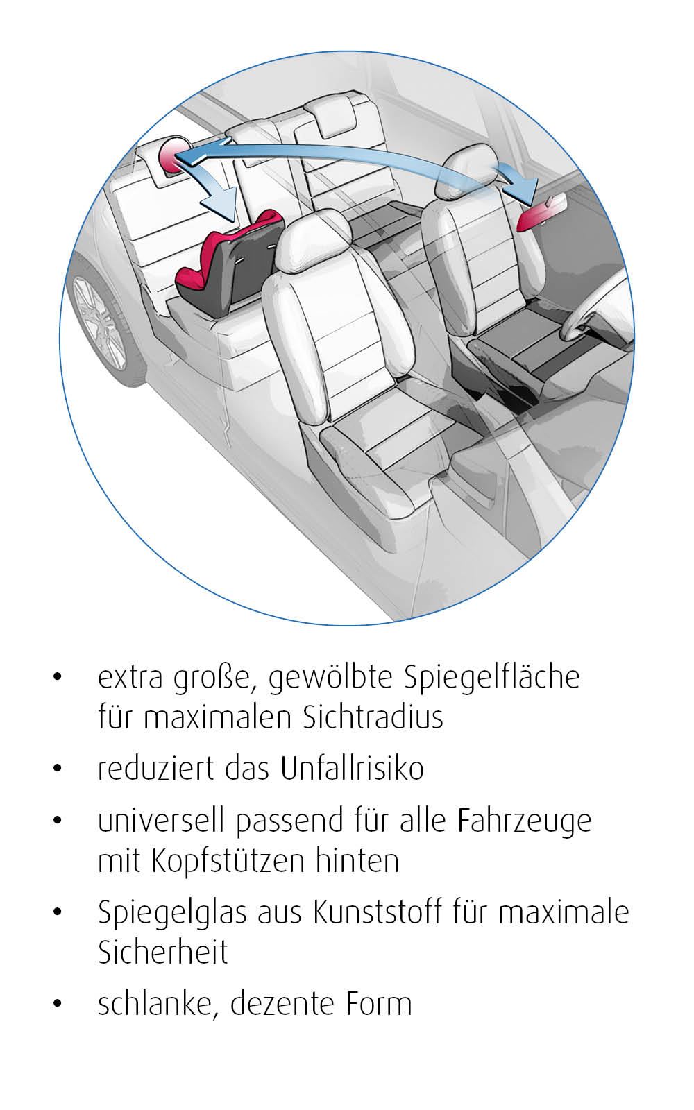 - Universelt bilspeil – passer de fleste biler og nakkestøtter