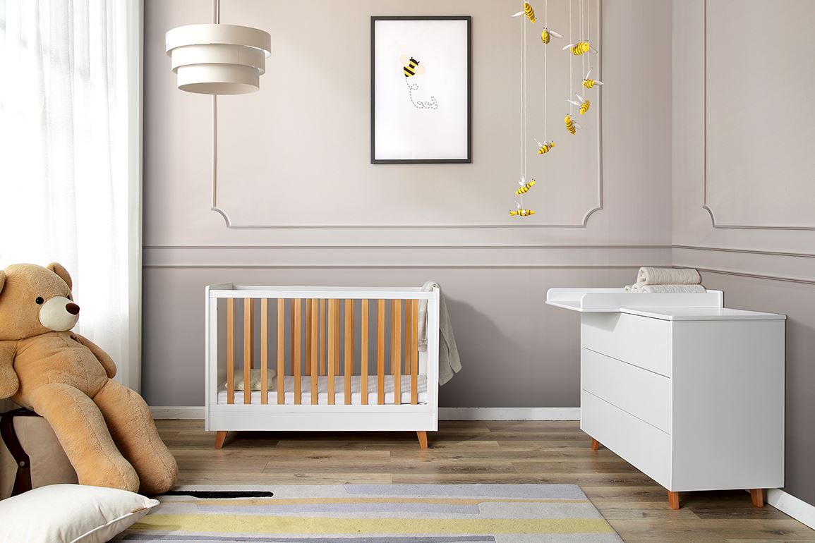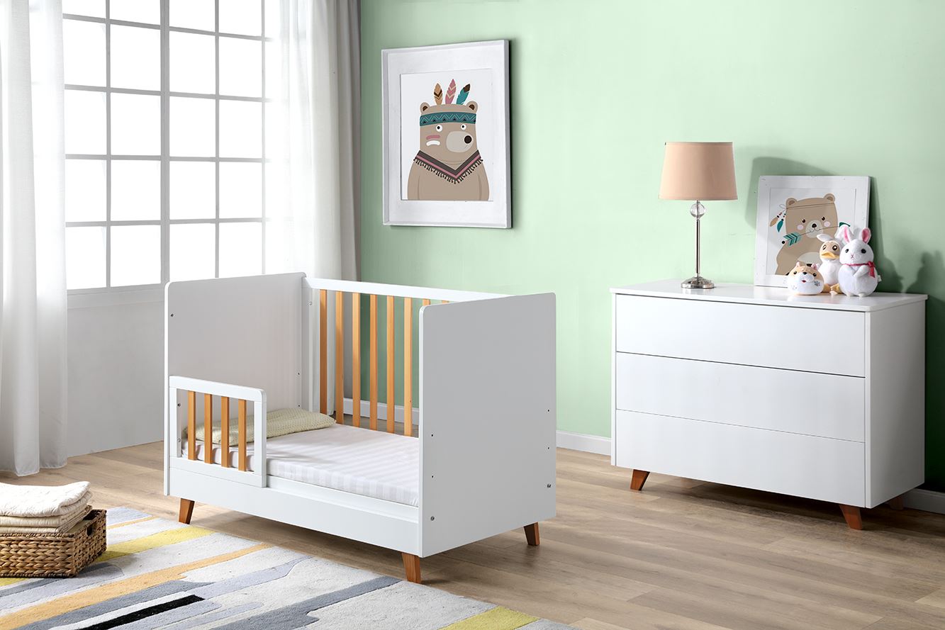 En trygg og fleksibel barneseng som vokser med barnet.