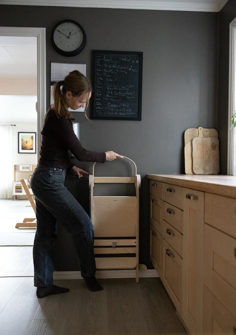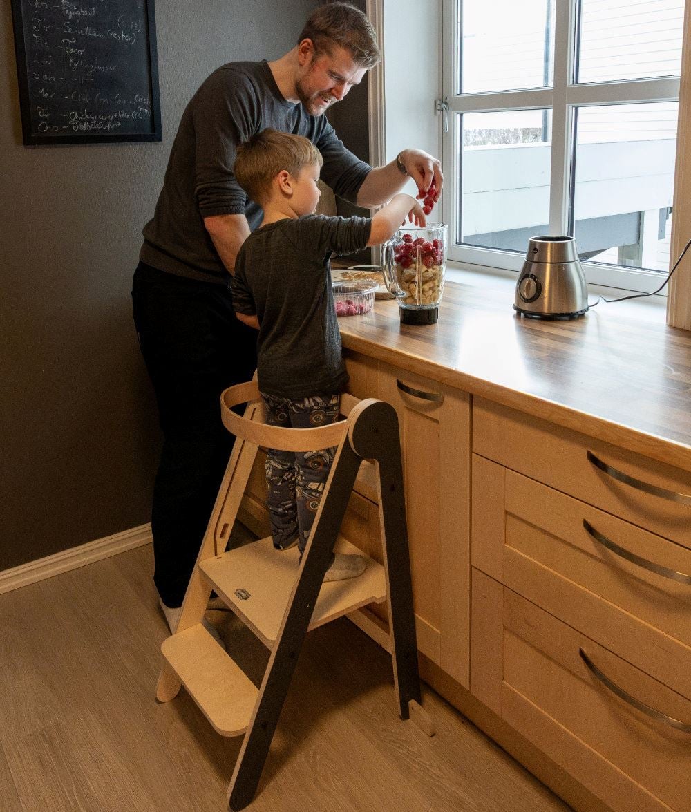 - Montessori-inspirert læringstårn - lar barnet delta trygt i hverdagsaktiviteter