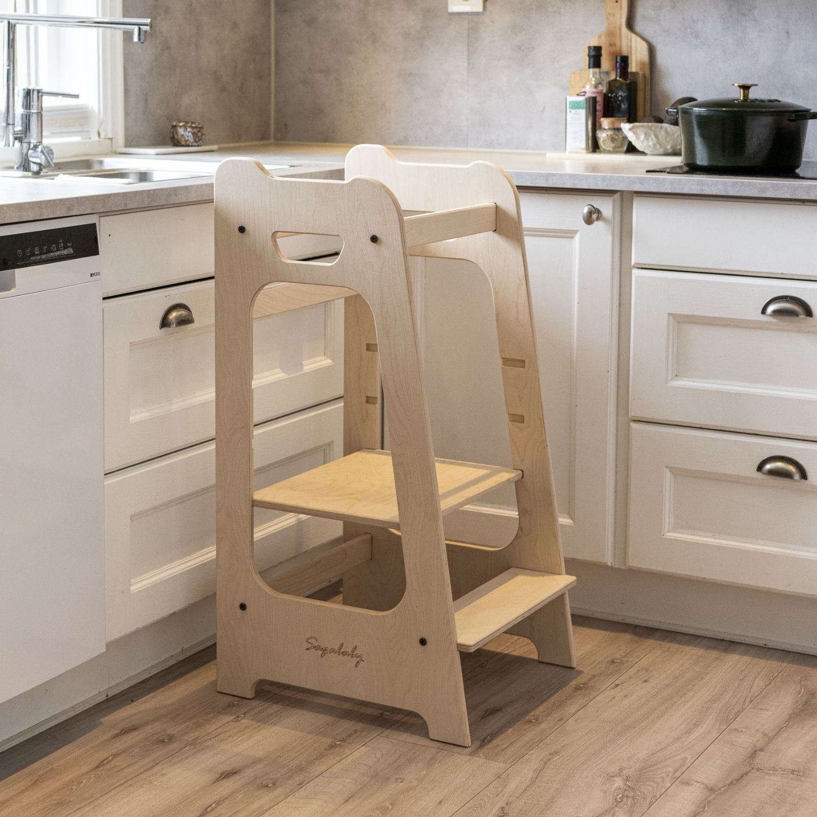 - Kjøkkenhjelper (learning tower / kitchen tower / montessori tower), som kan justeres i tre ulike høyder