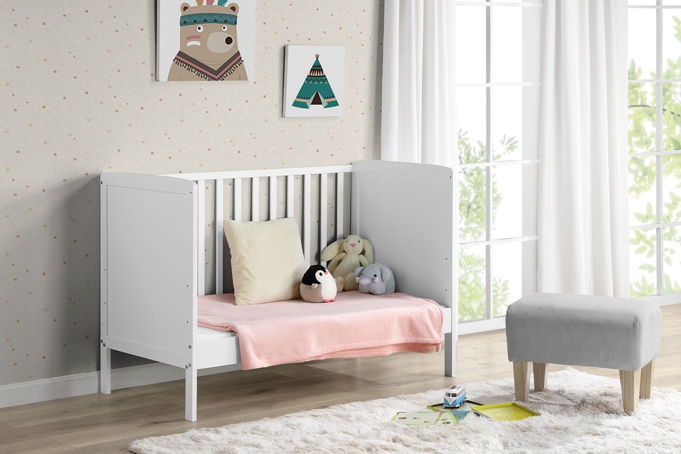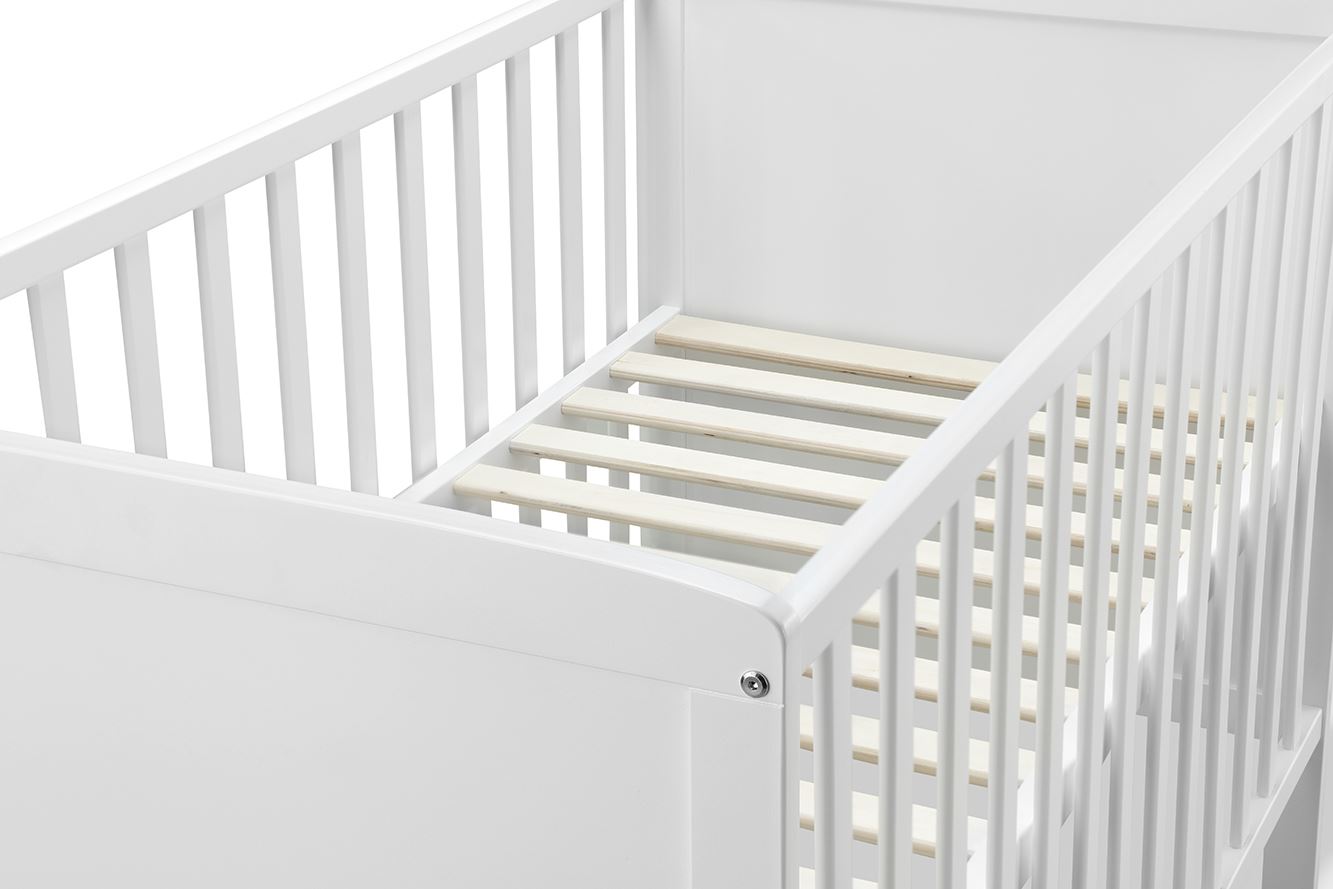 Nora er en trygg og fleksibel barneseng som kan brukes i flere år.