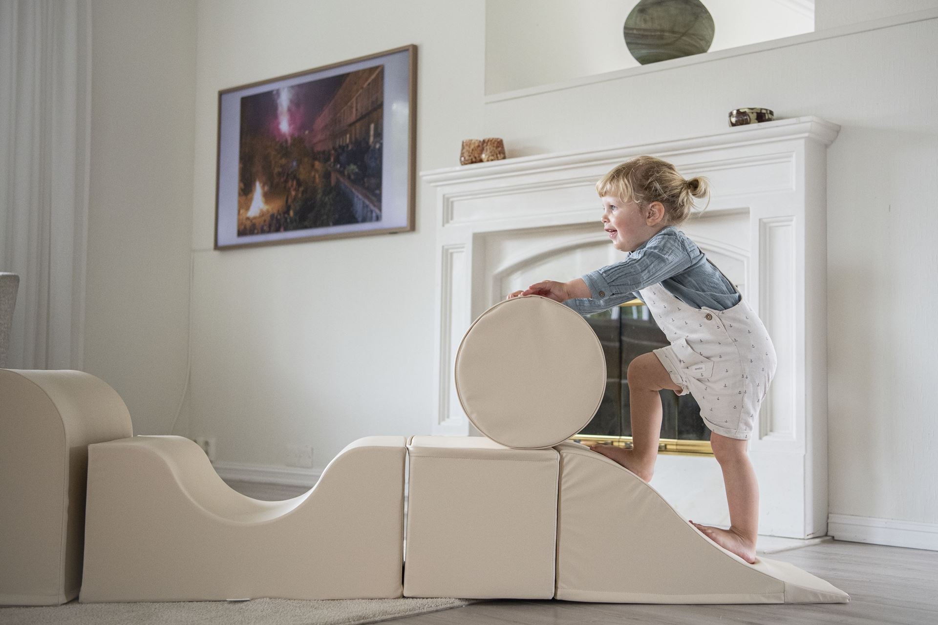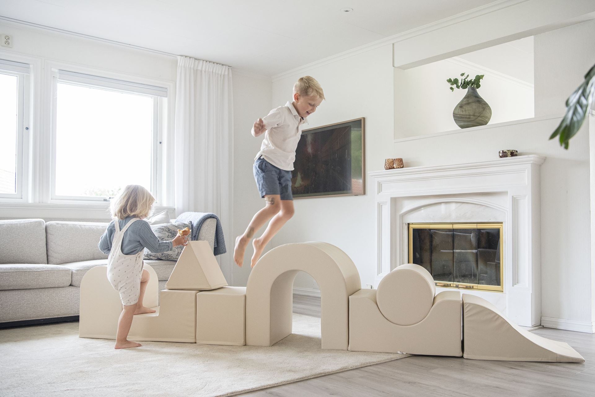 Sagababy Soft Play er en tumleleke/motorikkbane, og er er gøy for alle barn. Kombiner gjerne med ett av våre ballbasseng. Med sitt flotte design passer Sagababy perfekt inn i moderne skandinaviske hjem!