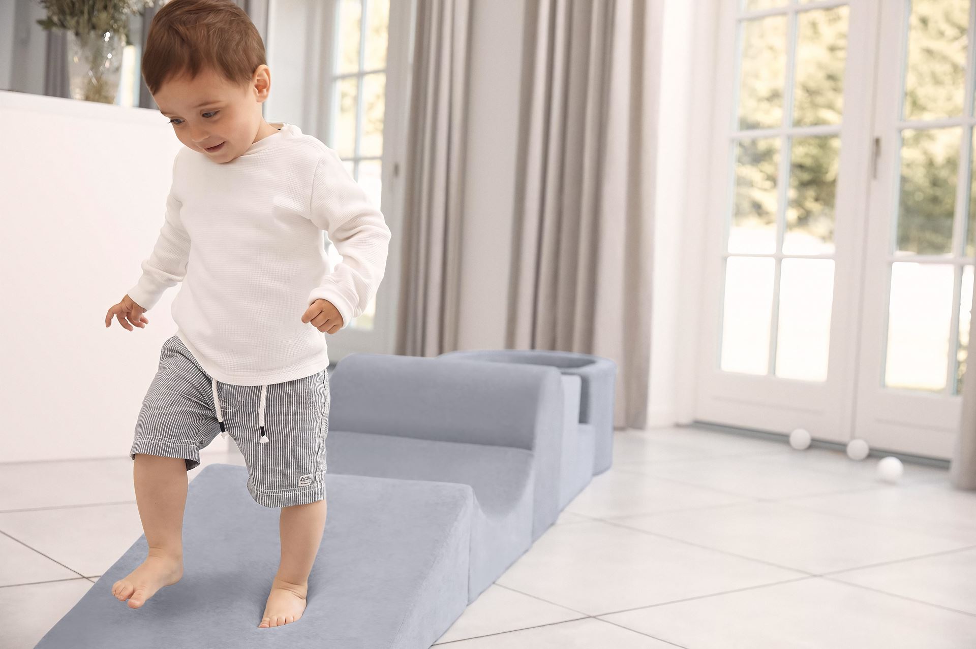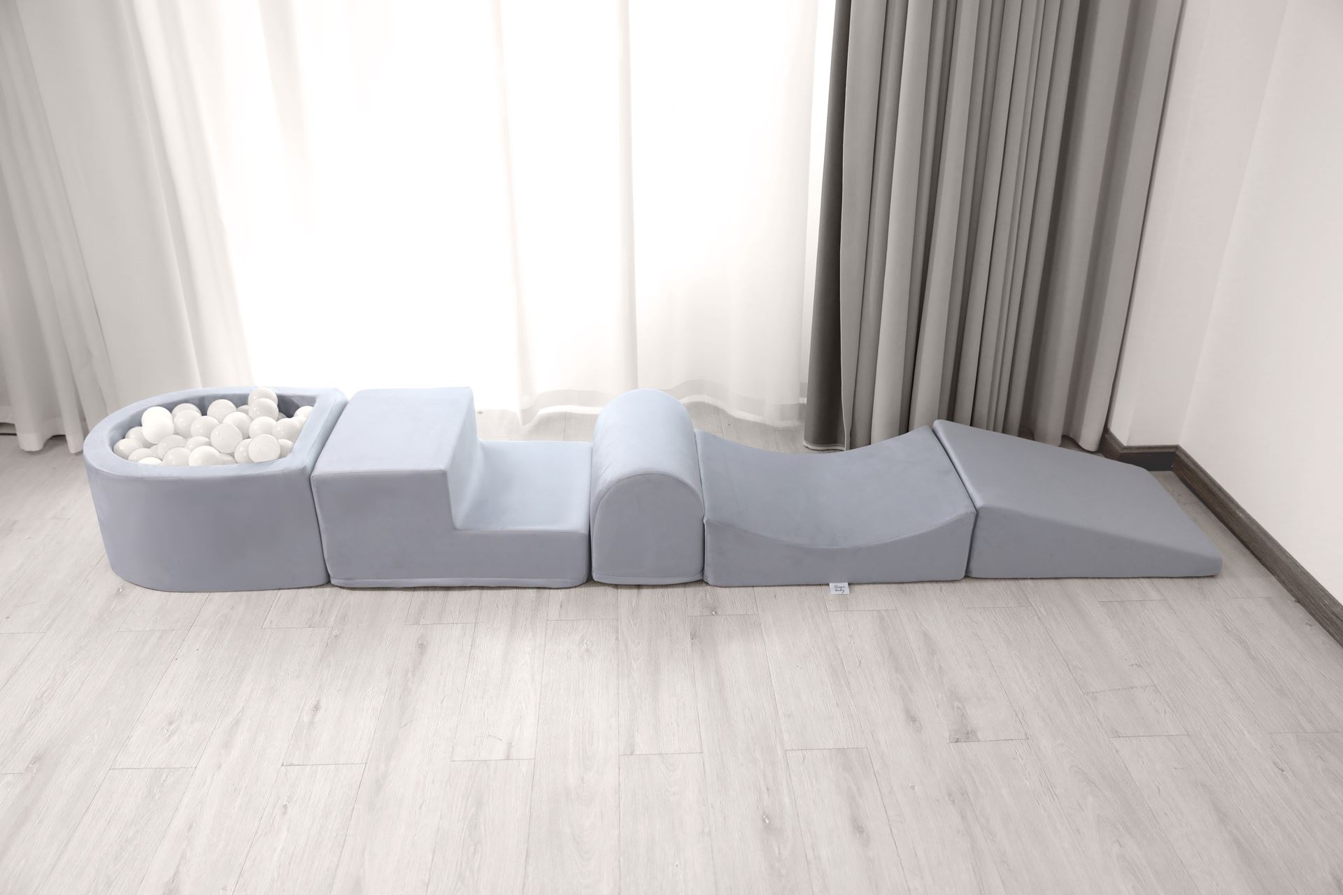 Original Play Set i farge Grey Chenille velur . Maksimal morro for alle barn! Her får du en lekeplass bestående av fem skum-elementer som barnet enkelt kan flytte rundt på, og lage ulike formasjoner av. Bruk den som lekeplass, hinderløype eller la barnet lage sin egen kosekrok - og stimuler barnets fantasi og kreativitet.