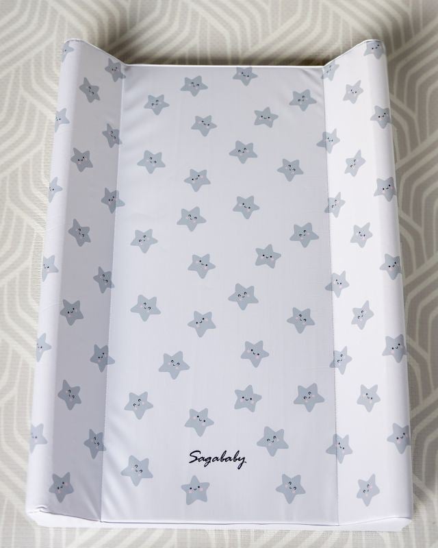 Sagababy Stellematte 70x47cm er et solid og praktisk stelleunderlag med stiv bunn og tre høye sider som gir ekstra sikkerhet under bleieskift. Det myke skumfyllingetn gir god liggekomfort, mens den slitesterke PVC‑overflaten beskytter mot væske og er enkel å tørke av. Matten er Øko‑Tex sertifisert, fri for skadelige stoffer og skånsom mot babyens hud. Perfekt til bruk på stellebord, kommode, seng, gulv eller som et fleksibelt underlag i barnehage/institusjon.