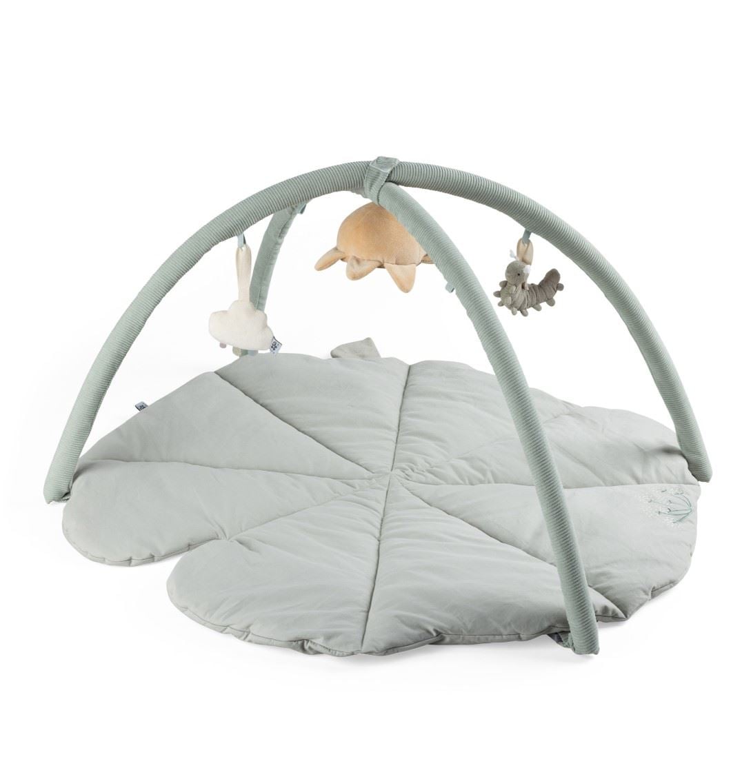 Den fleksible designen gjør den enkel å brette sammen eller ta med seg, og matten kan brukes både med og uten buene – som en myk lekematte, et raskt stellested eller et trygt sted å sitte og leke etter hvert som babyen vokser.